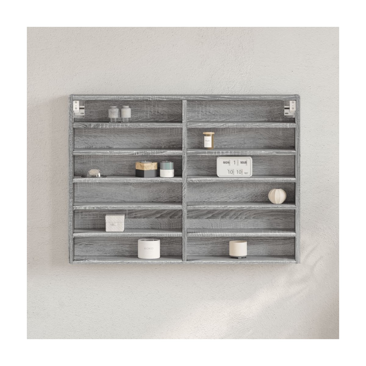 Esta moderna vitrina, con un diseño clásico y elegante, está destinado a ser un aporte práctico y decorativo para la decoración de tu casa. Material duradero:La madera de ingeniería tiene una calidad excepcional, con una superficie lisa y también con fuerza, estabilidad y resistencia a la humedad.Amplio espacio de almacenaje: El armario flotante ofrece un práctico espacio de almacenaje para mantener tus cosas bien organizadas y al alcance.Fácil de mantener: Gracias a su superficie lisa, el armario es fácil de limpiar con un paño húmedo y requiere menos mantenimiento.Diversos usos: Este mueble es versátil y adecuado para dormitorios, salas de estar, pasillos, etc. para tus necesidades. Información útil:Los tornillos y los tacos para el interior de la pared no están incluidos. Recomendamos encontrar y utilizar tornillos y tacos adecuados específicamente para las paredes. Si no estás seguro, puedes consultar con un profesional. Lee y sigue cada paso de las instrucciones.