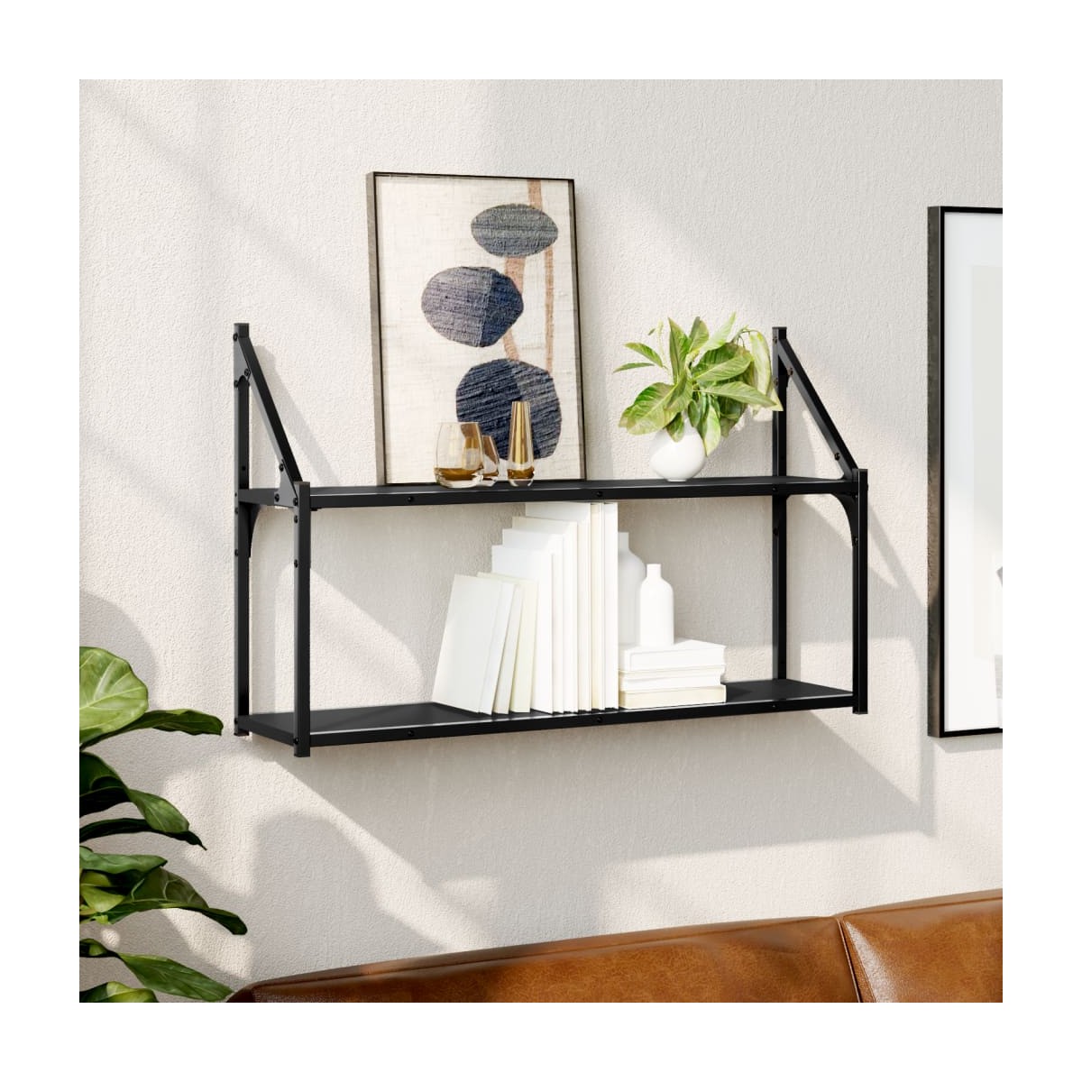 ¡Crea una zona de almacenaje adicional en un espacio limitado con esta estantería de pared de 2 niveles! Material duradero: Este estante flotante está hecho de madera de ingeniería. La madera de ingeniería tiene una calidad excepcional, con una superficie lisa,y también cuenta con fuerza, estabilidad y resistencia a la humedad.Amplio espacio de almacenamiento: El almacenamiento de pared cuenta con 2 estantes, proporcionando un amplio espacio para almacenar tus libros, plantas, marcos de fotos y cualquier cosa adicional.Diseño montado en la pared: La estantería expositora no ocupa espacio en el suelo. Puedes colgarla en la pared fácilmente.Amplios usos: La práctica estantería colgante es totalmente adecuada para el hogar y la oficina, así como la sala de estar, el baño, el dormitorio, el balcón, etc. Información útil:Los tornillos y los tacos para el interior de la pared no están incluidos. Recomendamos encontrar y utilizar tornillos y tacos adecuados específicamente para las paredes. Si no estás seguro, puedes consultar con un profesional. Lee y sigue cada paso de las instrucciones.
