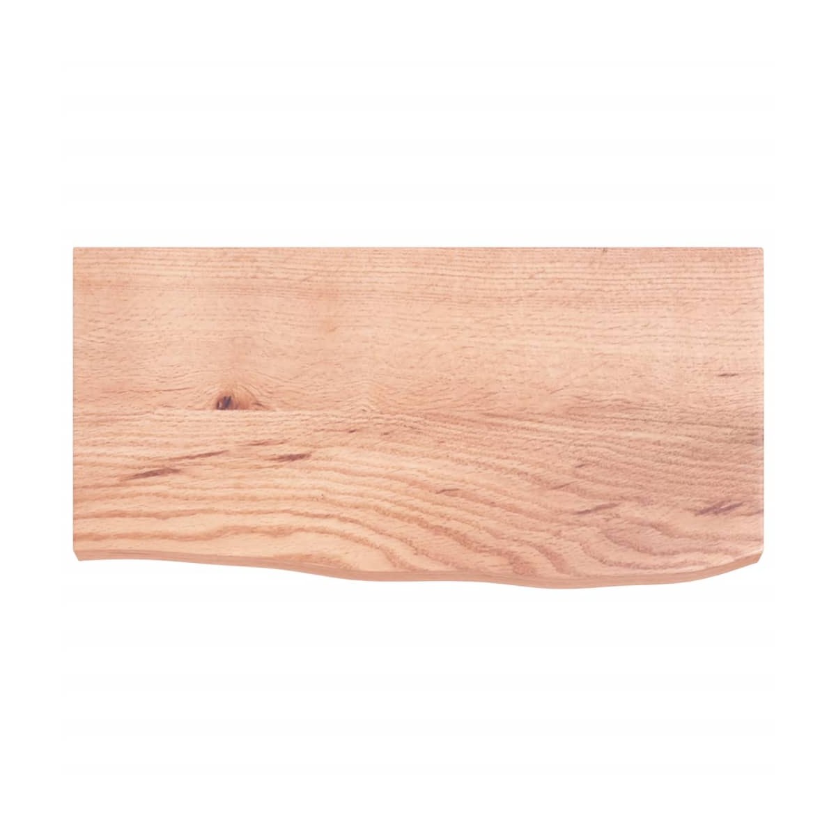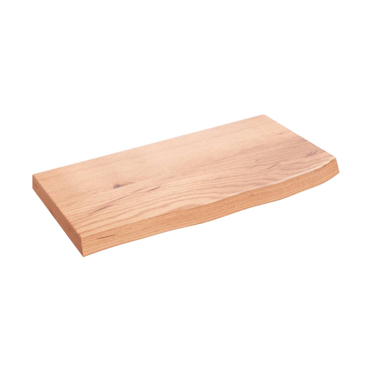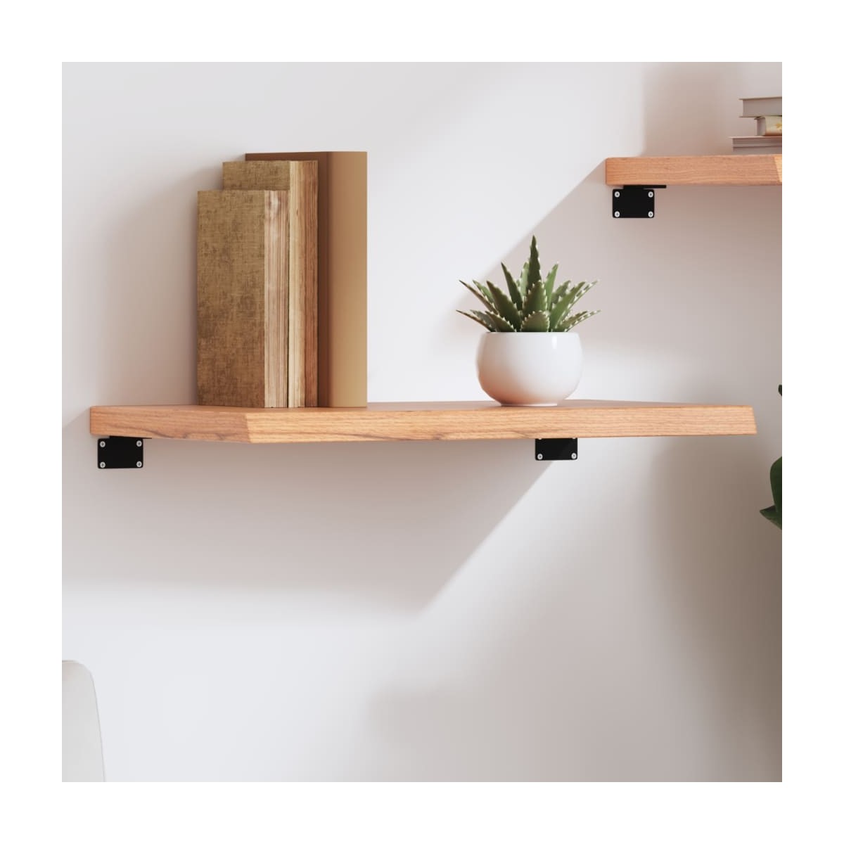 ¿Necesitas más opciones de almacenaje pero no tienes espacio de sobra? Este estante de pared de estilo rústico es la solución perfecta. Construcción duradera: El estante de pared está hecho de madera maciza de roble, un hermoso material natural. La madera de roble tiene un color marrón medio y unas vetas densas, que refuerzan su aspecto único.Usos versátiles: Además de un estante, este estante de almacenaje se puede combinar con bases diferentes según lo que necesites. Se puede utilizar como encimera de baño, superficie de armario, de escritorio, de mesa, etc.Superficie tratada: El estante de madera ha sido barnizado por lo que está listo para usar ya que no necesita un acabado adicional.Hecho a mano con borde natural: Este tablero de estante está hecho a mano con un borde natural. Debido a que los nudos, las grietas, las formas ligeramente curvadas y los tonos de color son parte de la madera de roble, cada estante tiene un carácter único. La entrega es aleatoria, que garantiza la exclusividad e individualidad del producto. Información útil:Al ser un producto natural, la madera puede presentar nudos e imperfecciones que rellenamos con rellenos para garantizar un aspecto liso.