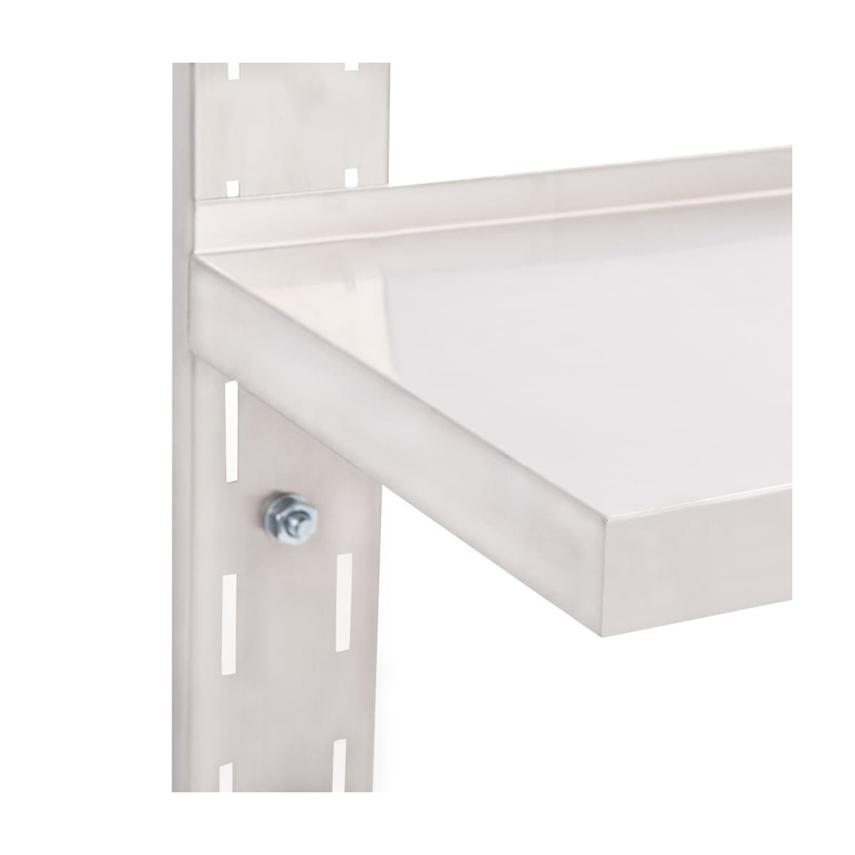 Nuestra estantería de pared de acero inoxidable con 2 niveles no solo es elegante sino también muy funcional, por lo que será una gran opción para aquellos que necesitan espacio de almacenamiento extra en la cocina. Sirve como un lugar perfecto para guardar platos y otros utensilios de cocina. Hecha de acero inoxidable, la estantería de pared para cocina es muy duradera, estable y fácil de limpiar, lo que lo hace perfecta para lugares en los que se requiere un alto nivel de higiene. Los estantes poseen una capacidad total de carga de 40 kg. Los accesorios de montaje están incluidos y nuestra estantería de pared colgante es fácil de montar.