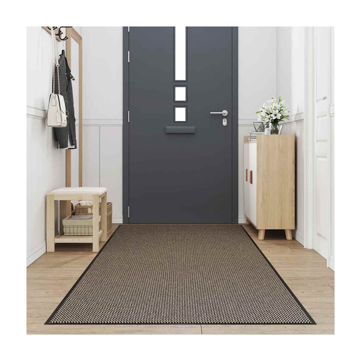 ¡Detén la suciedad con este felpudo, un aporte esencial para cualquier porche o vestidor! Material duradero: el felpudo de la puerta de entrada está hecho de polipropileno con mechones flexible pero duradero, lo que lo hace resistente al desgaste y garantiza un rendimiento duradero incluso en áreas de mucho tráfico.Absorción de agua y suciedad: el material del felpudo atrapa eficazmente la suciedad, el polvo y la humedad, manteniendo sus pisos limpios y secos.Diseño antideslizante: el respaldo de PVC antideslizante evita que la humedad se filtre y mantiene el tapete en su lugar.Fácil de limpiar: puedes limpiar este felpudo de forma rápida y sencilla sacudiéndolo, aspirándolo o rociándolo con una manguera.Amplias aplicaciones: este felpudo de bienvenida es perfecto para entradas interiores cerca de la puerta, armarios, lavanderías u otras áreas interiores y exteriores cubiertas de alto tráfico.