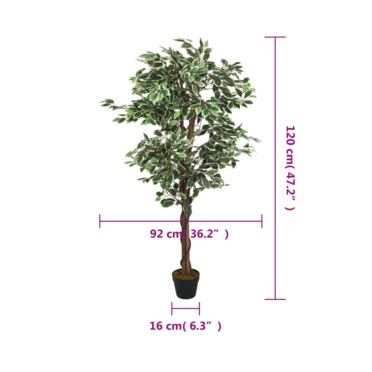 Este ficus artificial será una elección perfecta para adornar el recibidor, la sala de estar o la oficina. Aspecto realista: El árbol de ficus artificial tiene hojas de fibra textil que se asemejan a hojas de ficus reales, junto con troncos de madera que añaden autenticidad con su textura y colores naturales. Juntas, estas características dan al árbol un aspecto exuberante y vibrante.Menos mantenimiento: La planta artificial no requiere mantenimiento, ya que no necesita riego, poda ni abono. Ofrece una solución sencilla para quienes desean tener en casa la belleza del ficus sin necesidad de cuidarlo.Maceta redonda de plástico: El árbol falso realista ya está firmemente cementado en una maceta de plástico cuando se recibe.Amplia gama de usos: La planta de ficus artificial es versátil y se puede utilizar en diferentes entornos. Realza espacios interiores como casas, oficinas o zonas comerciales, y crea una atmósfera natural si se coloca al aire libre en jardines, patios o áreas junto a la piscina.