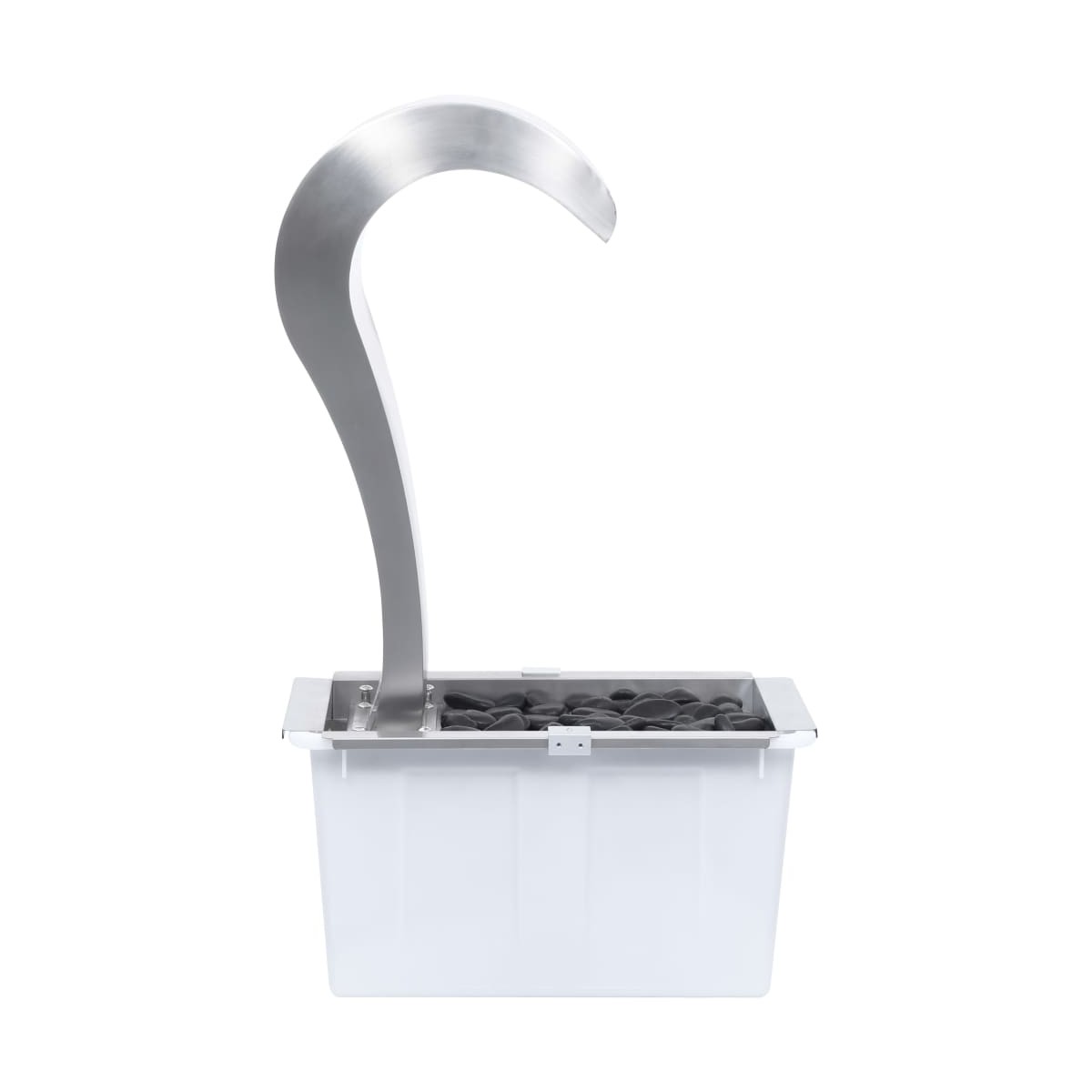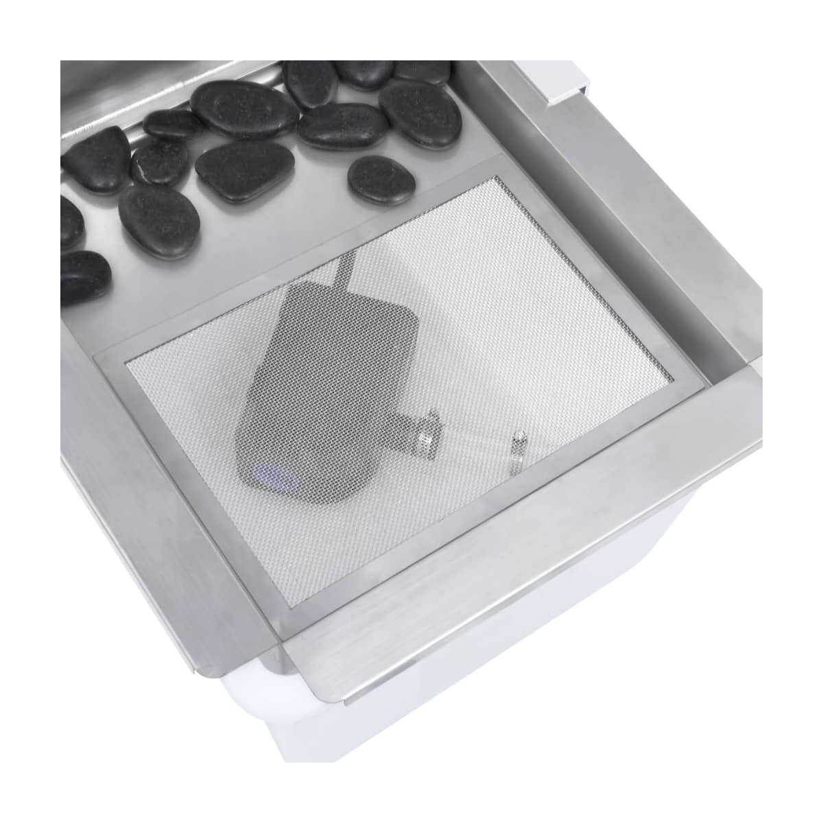 Nuestra cascada de jardín de acero inoxidable está equipada con una tira de LED en su boca y una bomba. Transforma tu jardín o terraza en un lugar de relajación para los ojos y los oídos. La fuente de jardín está diseñada para garantizar un flujo uniforme y constante de agua. Viene con una base de plástico que se puede enterrar en el suelo para crear el efecto. La bandeja de acero inoxidable pulido instalada en la parte superior de la base está decorada con guijarros incluidos. Esto refuerza el encanto natural de la fuente. La cascada se entrega con todos los accesorios necesarios para conectarla a la bomba de agua incluida. Está hecha de acero inoxidable 304 pulido, de alta densidad, por lo que es resistente al cloro y muy duradera. Este producto requiere montaje.