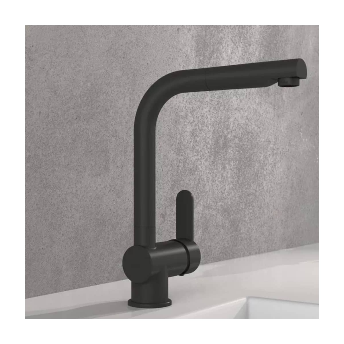 ¡No dejes pasar el grifo monomando de fregadero con un caño extraíble LONDON de SCHÜTTE! Podrás disfrutar de un grifo práctico, cómodo y fiable durante años. Diseño moderno: El grifo de fregadero está hecho de metal y tiene una larga vida útil. Además, posee un aspecto en color negro mate que mejora cualquier decoración de cocina moderna. Grifo de fregadero completo: Asimismo, este grifo tiene un flexo de conexión metálico, un caño que gira 360°, una maneta de metal, discos cerámicos y un cartucho silencioso y reemplazable de 40 mm.Práctico grifo monomando para fregadero: El grifo mezclador tiene una función de arranque en frío, que ahorra energía. Este grifo, equipado con caño extraíble, resulta flexible y cómodo para lavar frutas o lavar platos sin mucho esfuerzo. Si estás buscando un grifo duradero para lavabos y fregaderos, este grifo monomando es la elección perfecta.