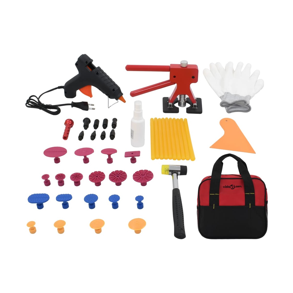 ¿Le da rabia conducir al taller de carrocería para reparar una abolladura del coche? ¿Por qué no ahorrar el dinero de las reparaciones de abolladuras y comprar una botella de su cerveza favorita o disfrutar de un viaje agradable? Nuestra herramienta de reparación de abolladuras sin pintura lo hace posible. Este juego de reparación de abolladuras incluye todas las herramientas esenciales para la eliminación de abolladuras, como un par de guantes, un juego de pistola de pegamento, un juego de desabolladores a golpe con pegamento, un juego de desabolladores a golpe, etc. Con este set, puede reparar abolladuras en casi cualquier lugar en cualquier coche. Además, todas las piezas se entregan en una bolsa de transporte para facilitar su transporte y almacenamiento.
