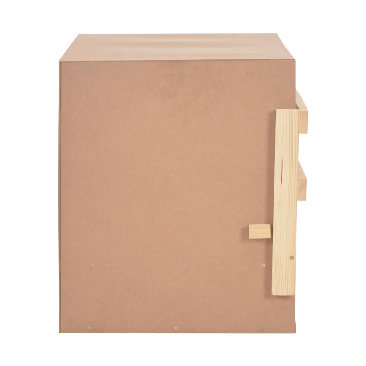 ¡Este nidal de madera proporcionará un lugar cómodo y protegido para que tus gallinas pongan huevos! Los 3 espaciosos compartimentos permiten que 3 gallinas grandes se instalen y pongan huevos. Los huevos caerán suavemente por los agujeros del suelo hasta el cajón de debajo, lo que facilita su recogida. La parte inferior extraíble facilita la limpieza. Las perchas se pueden plegar para evitar que duerman allí por la noche. El tejado plano hace que sea cómodo para las gallinas y también permite apilar fácilmente varias cajas nido. Si buscas ponederos de gallinas con tejado inclinado puedes consultar nuestra tienda. Hecho de madera maciza de pino y contrachapada, el nidal para aves está construido para durar. La caja nido es fácil de montar.