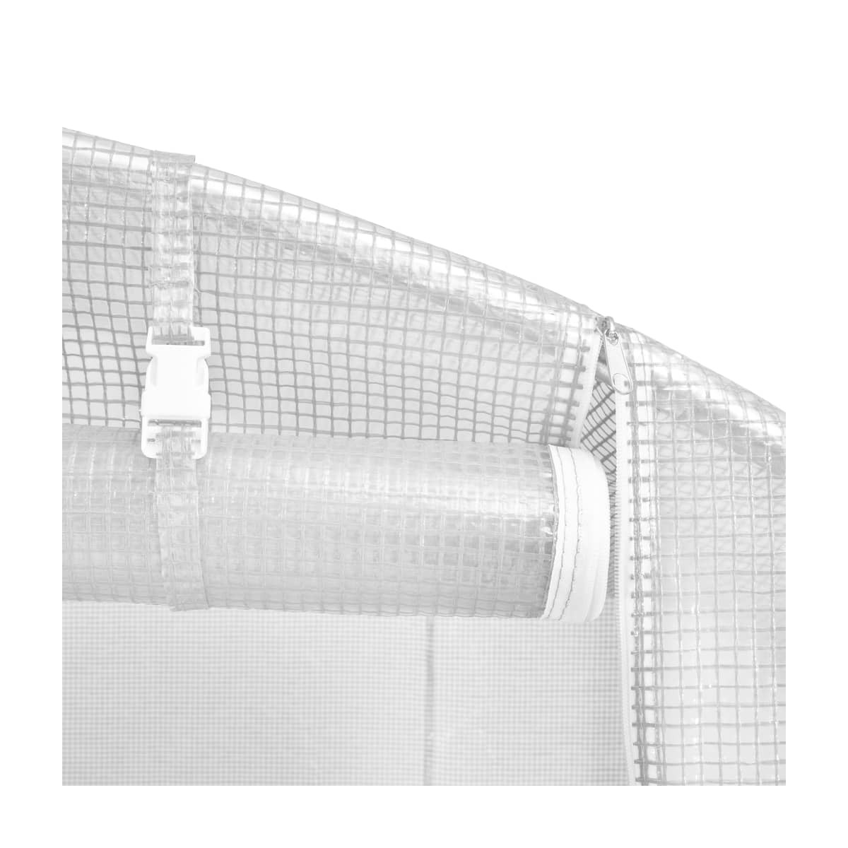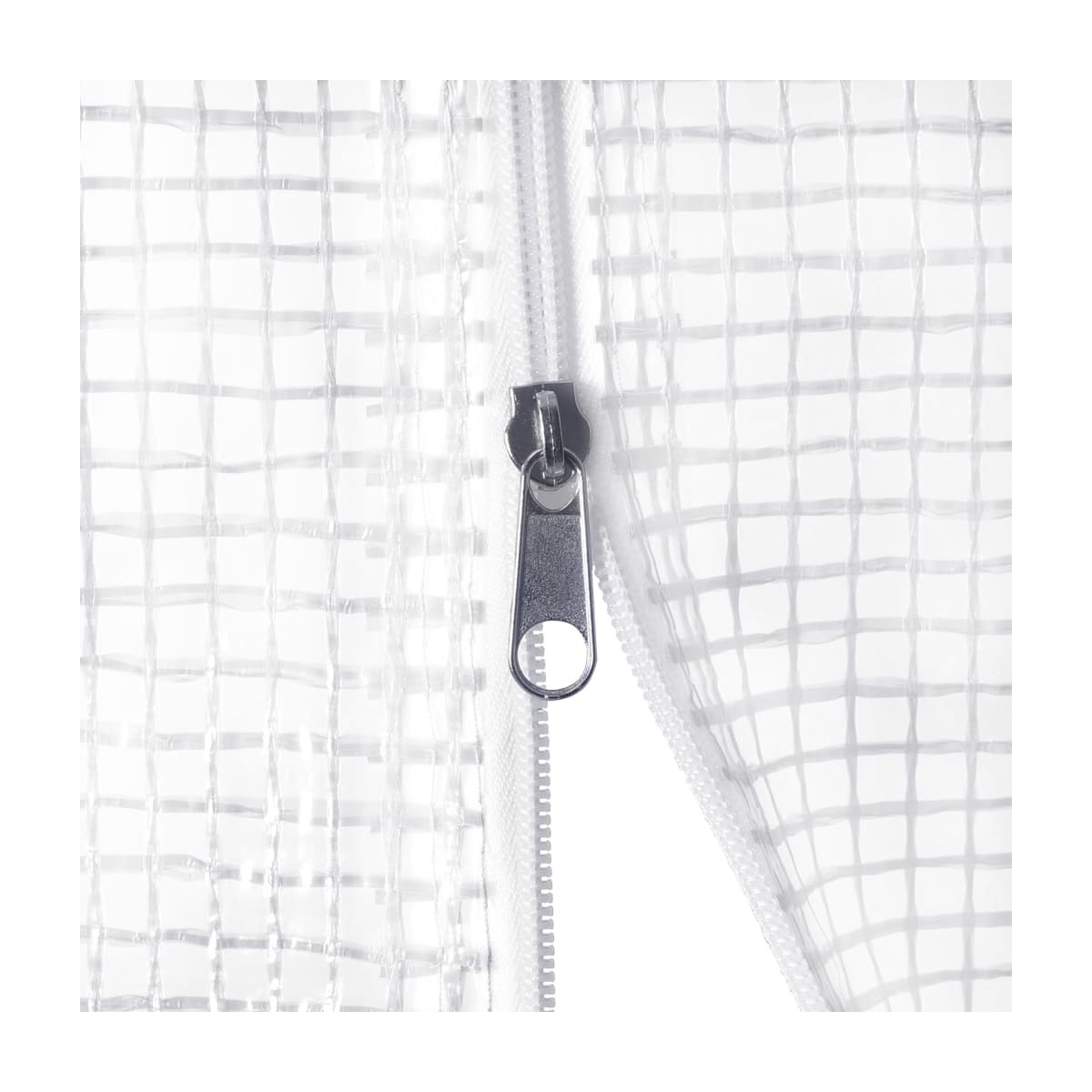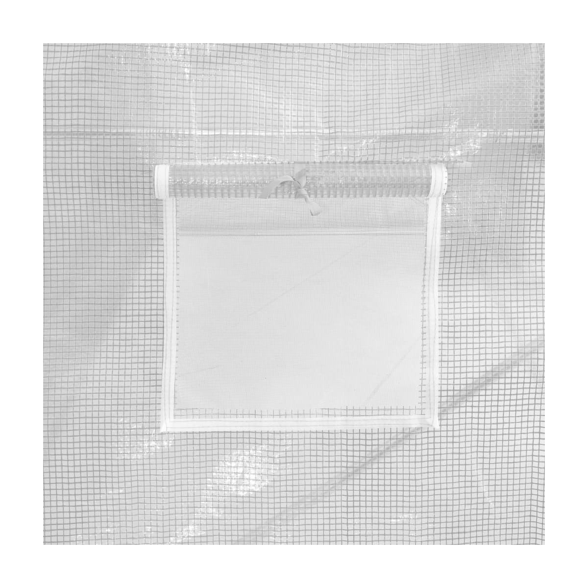 Este espacioso invernadero tiene capacidad para un número considerable de frutas, verduras y plantas. Es ideal para proteger las plantas de las condiciones meteorológicas adversas. Cubierta de PE duradera: El polietileno (PE) es el material plástico más utilizado. Es resistente a los rayos UV, a la intemperie, antidesgarros, ligero y fácil de mantener. Además, protege las plantas de los pájaros y conserva el calor.Estructura robusta: El acero es un material muy duro y resistente. Ofrece solidez y estabilidad. La galvanización brinda una mejor protección contra la corrosión y es útil para productos que se usarán al aire libre y en entornos hostiles.Diseño práctico: El vivero para plantas está diseñado para facilitar el acceso y optimizar la circulación del aire gracias a su puerta enrollable con cremallera y a las 4 ventanas laterales de malla enrollables. Información útil:Recomendamos añadir unos cimientos para conseguir una mayor resistencia. El tejado del invernadero no resiste fuertes nevadas.