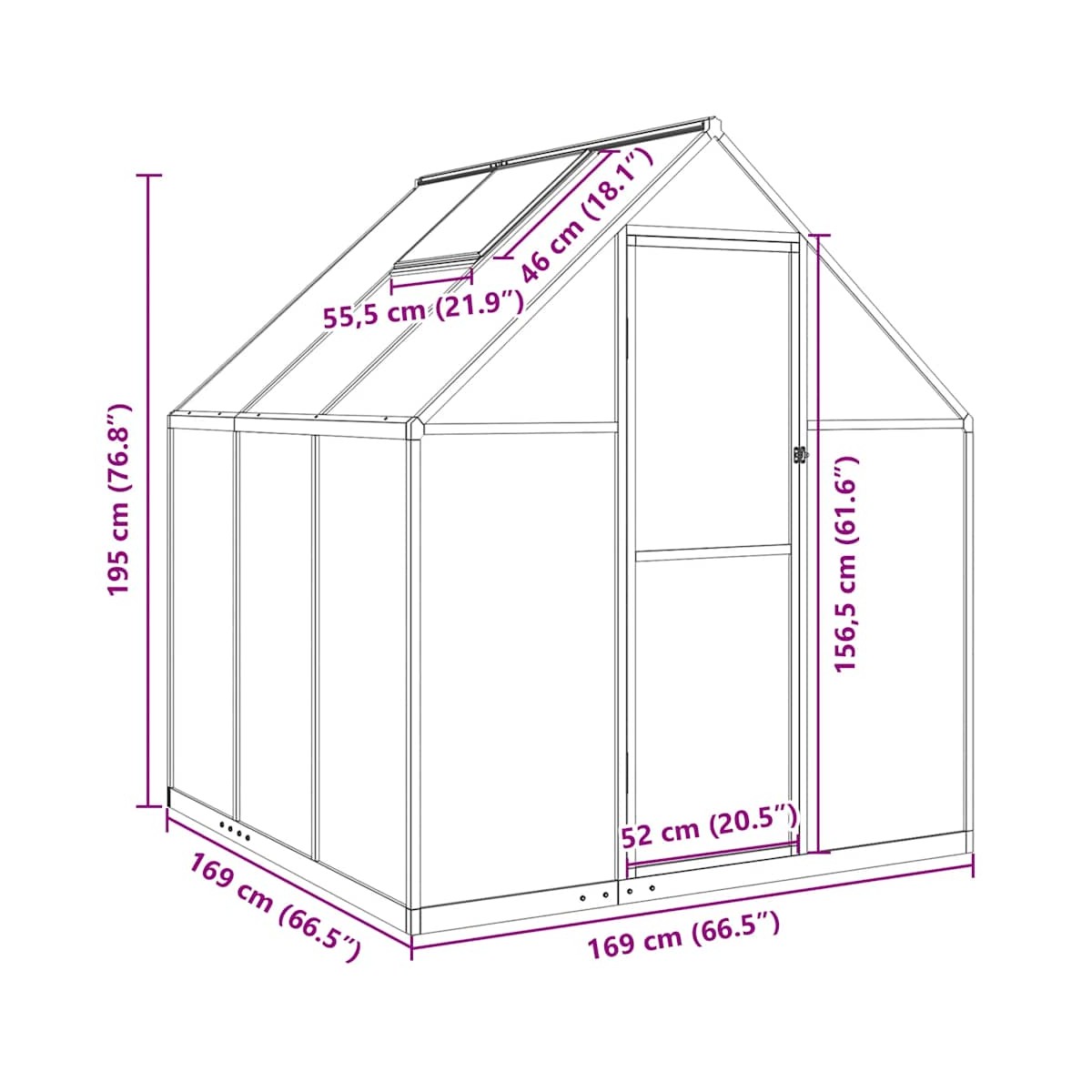 Este invernadero puede acomodar una cantidad considerable de plantas y es una gran solución para proteger tus plantas del clima frío. Marco robusto y resistente a la intemperie: El marco del invernadero está hecho de aluminio resistente a la oxidación y a la intemperie para una alta resistencia al viento y estabilidad.Panel duradero y resistente a los rayos UVA: Las láminas están hechas de paneles laterales de policarbonato resistentes a los rayos UVA, y son ligeras, duraderas y fáciles de mantener, y capaces de soportar vientos y nieve.Diseño práctico: Esta estructura de invernadero está equipada con una estructura de perfil inferior de aluminio de 6 cm de altura que se puede enterrar fácilmente en el suelo, lo que ahorra costes adicionales de base.Diseño bien pensado: El sistema de canaletas incorporado permite efectivamente el drenaje del agua, y la ventana de ventilación está diseñada con 5 ángulos ajustables para la circulación del aire para equilibrar la humedad y la temperatura. La puerta con bisagras también facilita la entrada al invernadero para el uso diario.Diseño de montaje rápido: Esta estructura de invernadero cuenta con un sistema de montaje rápido para una instalación eficaz y rápida. Advertencia: El invernadero no es un edificio de construcción o un invernadero, destinado a fines de ocio. Es una instalación agrícola independiente y no permanente destinada únicamente a la jardinería de aficionados.
