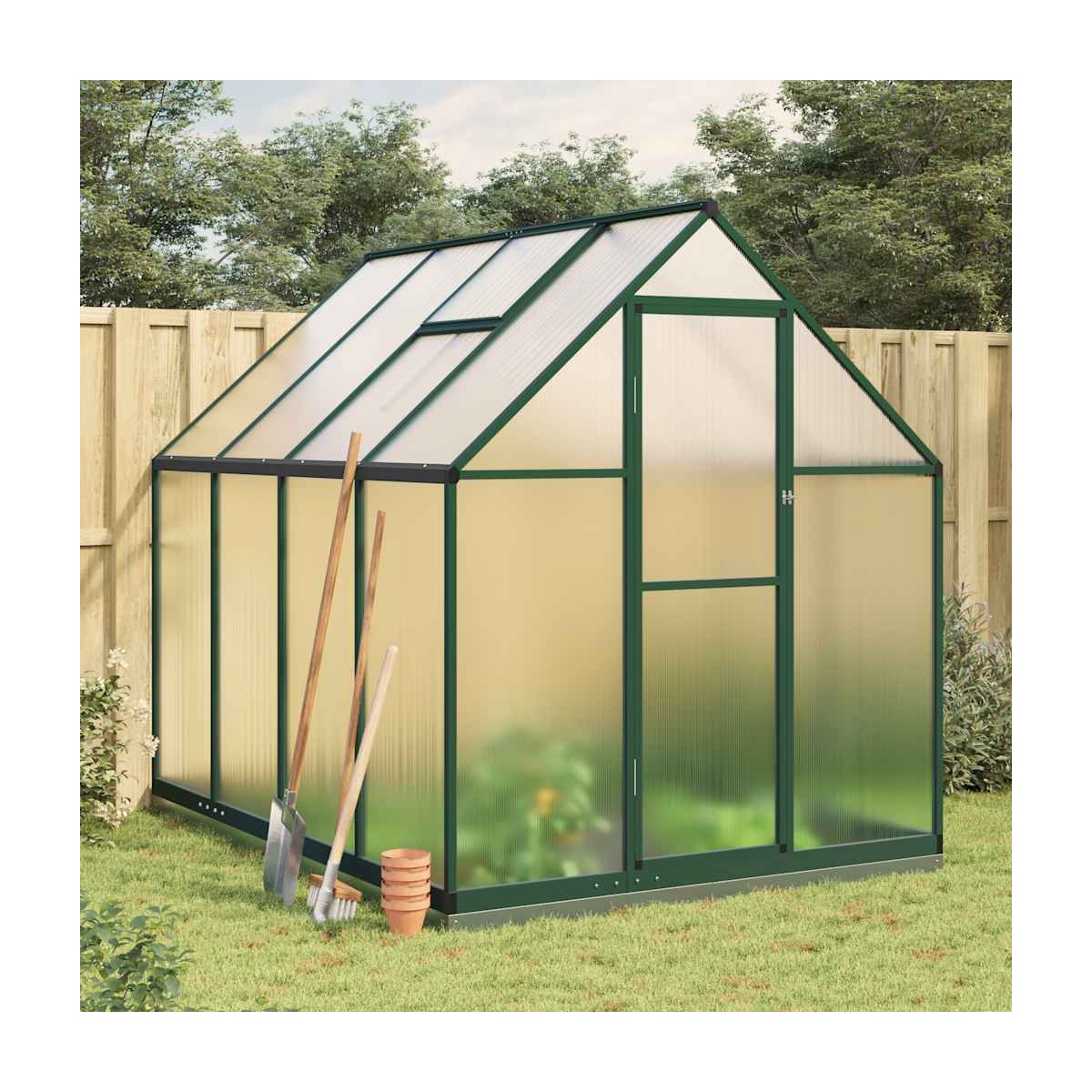 Este invernadero puede acomodar una cantidad considerable de plantas y es una gran solución para proteger tus plantas del clima frío. Material resistente a la intemperie y robusto: La estructura del invernadero está hecha de aluminio resistente al óxido y a la intemperie para una gran resistencia al viento y estabilidad. Las láminas están hechas de paneles laterales de policarbonato resistente a los rayos UV, que son ligeros, duraderos y fáciles de mantener, y capaces de soportar vientos y nieve.Diseño práctico: Esta estructura de invernadero está equipada con una estructura de perfil inferior de aluminio de 6 cm de altura que se puede enterrar fácilmente en el suelo, lo que ahorra costes adicionales de base. También incluye una base adicional de acero galvanizado de 7 cm para añadir estabilidad estructural.Diseño bien pensado: El sistema de canaletas incorporado permite efectivamente el drenaje del agua, y la ventana de ventilación está diseñada con 5 ángulos ajustables para la circulación del aire para equilibrar la humedad y la temperatura. La puerta con bisagras también hace que sea más fácil entrar en el invernadero para el uso diario.Gran espacio de cultivo: El invernadero del patio trasero te ofrece un amplio espacio para cultivar una amplia variedad de plantas o cultivos.Diseño de montaje rápido: Esta estructura de invernadero cuenta con un sistema de montaje rápido para una instalación eficaz y rápida. Advertencia: El invernadero no es un edificio de construcción o un invernadero, destinado a fines de ocio. Es una instalación agrícola independiente y no permanente destinada únicamente a la jardinería de aficionados.