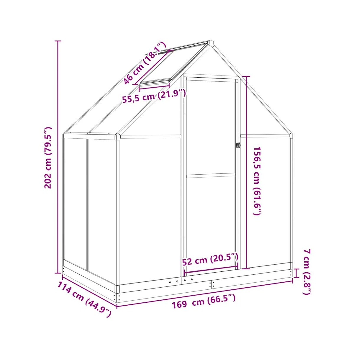 Este invernadero puede acomodar una cantidad considerable de plantas y es una gran solución para proteger tus plantas del clima frío. Marco robusto y resistente a la intemperie: El marco del invernadero está hecho de aluminio resistente a la oxidación y a la intemperie para una alta resistencia al viento y estabilidad.Panel duradero y resistente a los rayos UVA: Las láminas están hechas de paneles laterales de policarbonato resistentes a los rayos UVA, y son ligeras, duraderas y fáciles de mantener, y capaces de soportar vientos y nieve.Diseño práctico: Esta estructura de invernadero está equipada con una estructura de perfil inferior de aluminio de 6 cm de altura que se puede enterrar fácilmente en el suelo, lo que ahorra costes adicionales de base. También incluye una base adicional de acero galvanizado de 7 cm para añadir estabilidad estructural.Diseño bien pensado: El sistema de canaletas incorporado permite efectivamente el drenaje del agua, y la ventana de ventilación está diseñada con 5 ángulos ajustables para la circulación del aire para equilibrar la humedad y la temperatura. La puerta con bisagras también facilita la entrada al invernadero para el uso diario.Diseño de montaje rápido: Esta estructura de invernadero cuenta con un sistema de montaje rápido para una instalación eficaz y rápida. Advertencia: El invernadero no es un edificio de construcción o un invernadero, destinado a fines de ocio. Es una instalación agrícola independiente y no permanente destinada únicamente a la jardinería de aficionados.