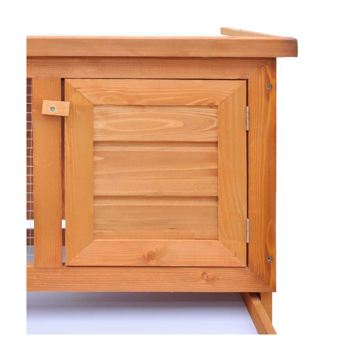 Esta conejera de calidad proporciona un lugar grande y acogedor para guardar animales pequeños, especialmente los lindos conejos. Presenta múltiples usos: jugar, hacer ejercicio, entrenar o simplemente mantener a tus mascotas de manera segura. Esta conejera brinda a tus mascotas mucho espacio para ejercitarse, mientras que la malla de alambre apretada ayuda a prevenir conductas maliciosas y accidentes inesperados. Mientras tanto, la construcción de una rejilla de alambre de hierro garantiza el control de las mascotas y garantiza a tus mascotas un amplio campo de visión y suficiente aire fresco. La conejera está construida con una estructura de madera de muy buena calidad, por lo que es un recinto fuerte y seguro que durará años. Su techo de asfalto verde mantiene la lluvia lejos, mientras que el acogedor cubículo es el cuarto perfecto para dormir. El tejado superior se puede abrir para meter o sacar a tus mascotas. Una bandeja extraíble facilita la limpieza. La puerta se cierra fácilmente y se traba con un pestillo deslizante. Esta jaula de madera es perfecta para mascotas pequeñas. Nota importante: Recomendamos que coloques la jaula para conejos bajo techo. En consecuencia, tendrá una vida útil más larga.
