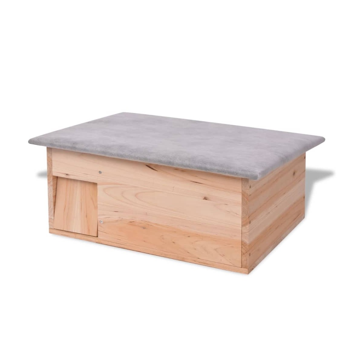 Este refugio de madera diseñado específicamente, es perfecto para erizos y otros animales pequeños para hibernar durante el invierno, y también se puede utilizar como casita para darles de comer. Hecha de una sólida de madera de abeto chino y equipada con un techo cubierto de tela de poliéster impermeable, la casa de erizos es robusta y resistente a la intemperie. La casa tiene una entrada de laberinto para evitar que los gatos puedan entrar, lo que la hace muy segura. El techo se puede levantar, por lo que el interior de la casa es fácil de limpiar. Tus pequeños amigos vivirán cómodamente en esta cálida y segura casa. El montaje es muy fácil.