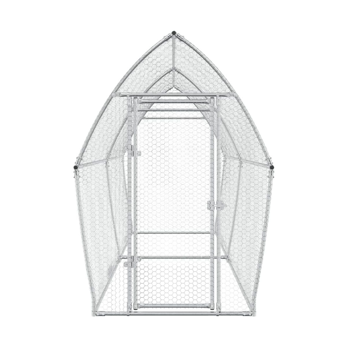 Esta práctica y espaciosa jaula para pollos es una opción perfecta como recinto exterior para tus pollos, gallinas, patos y otros animales pequeños y los mantiene cómodos. Estructura duradera y robusta: El gallinero está hecho de acero galvanizado. El acero es un material muy duro y fuerte. Ofrece robustez y estabilidad. La galvanización brinda una mejor protección contra la corrosión y es útil para productos que se usarán al aire libre y en entornos hostiles.Amplio espacio: El gallinero proporciona a tus gallinas un amplio espacio para caminar con facilidad. Además, también es adecuado para otros animales pequeños como pájaros, conejos, patos, gansos, etc.Seguridad extra: La puerta con bisagras con un sistema de pestillo con cerradura del gallinero garantiza una seguridad adicional para tus pollos y gallinas.