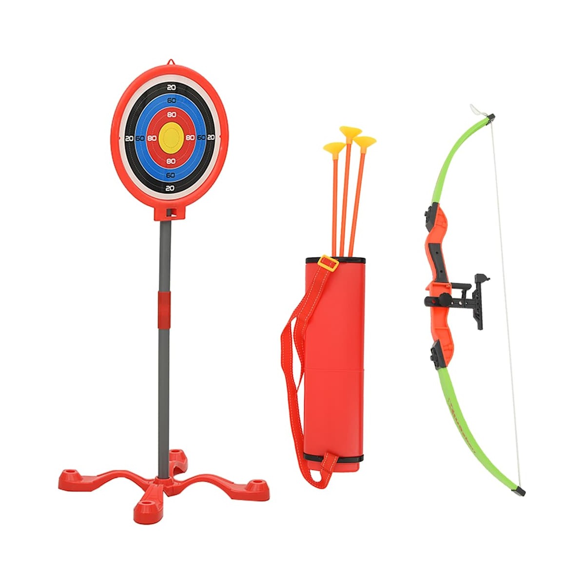 ¡Anima a tu hijo a mantenerse activo con este gran juego de tiro con arco! Ayuda a mejorar la concentración y desarrollar la coordinación ojo-mano. Este conjunto de arco y flecha está hecho de ABS, PP y PE, lo que proporciona una estructura robusta para un rendimiento duradero. El objetivo está sujeto a un soporte estable, con patrones de colores y números para conocer los puntos. El arco tiene un agarre cómodo para que los niños jueguen mejor mientras aprenden también. Además, la flecha tiene una punta de ventosa que asegura un palo perfecto e incluso para una mayor seguridad de los niños mientras juegan. El juego de tiro con arco para niños es liviano para que los niños puedan llevarlo consigo en cualquier lugar y en cualquier momento. Es perfecto para el juego individual y divertido para jugar con amigos y desafiar las habilidades y la precisión de los demás.