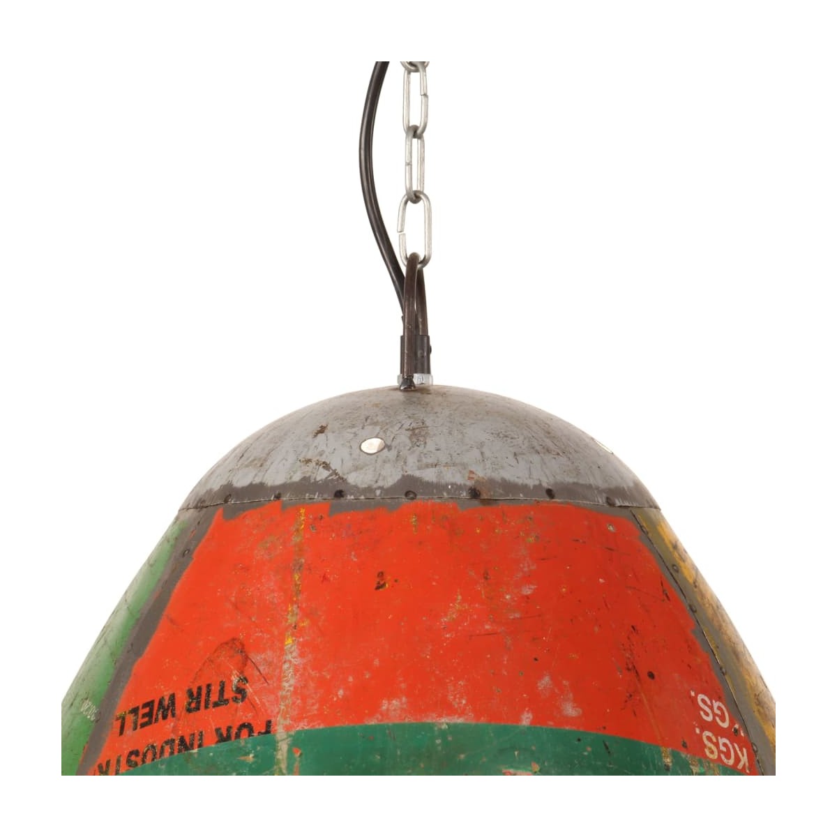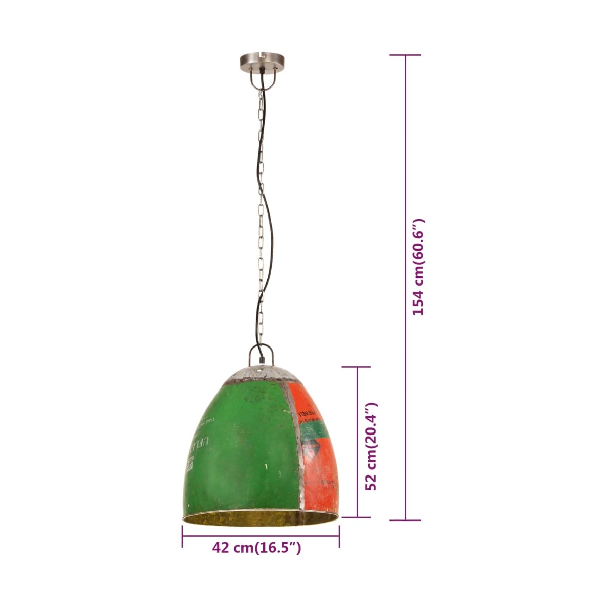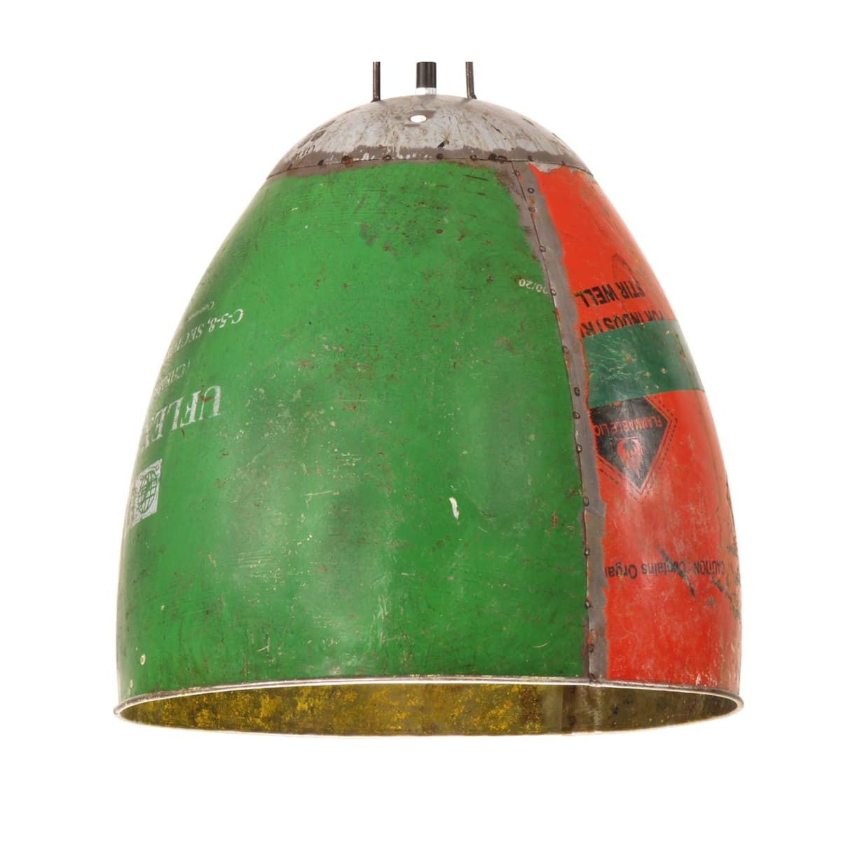 Esta lámpara colgante, con una longitud total de 154 cm y 42 de diámetro de cada pantalla, será, sin duda, un punto destacado en la sala de estar, el comedor, las oficinas, etc. Color pintado a mano: Como cada pieza está hecha a mano, los colores variarán en cada producto. Puedes ver algo de azul, verde, y a veces naranja, rojo o rosa.Casquillo E27: La lámpara tiene un casquillo E27 para una bombilla de un máximo de 25 vatios. Puedes elegir e instalar bombillas E27 con varios colores de luz, para crear un ambiente de relajación y descanso.Estilo industrial: Las pantallas de hierro, con un acabado de mezcla reciclada, se adaptarán perfectamente a un estilo rural o industrial. Nota:Se trata de una lámpara de estilo industrial con imperfecciones en las pantallas, que le otorgan su identidad y que, con su aspecto irregular, la hacen única.Las bombillas no están incluidas.