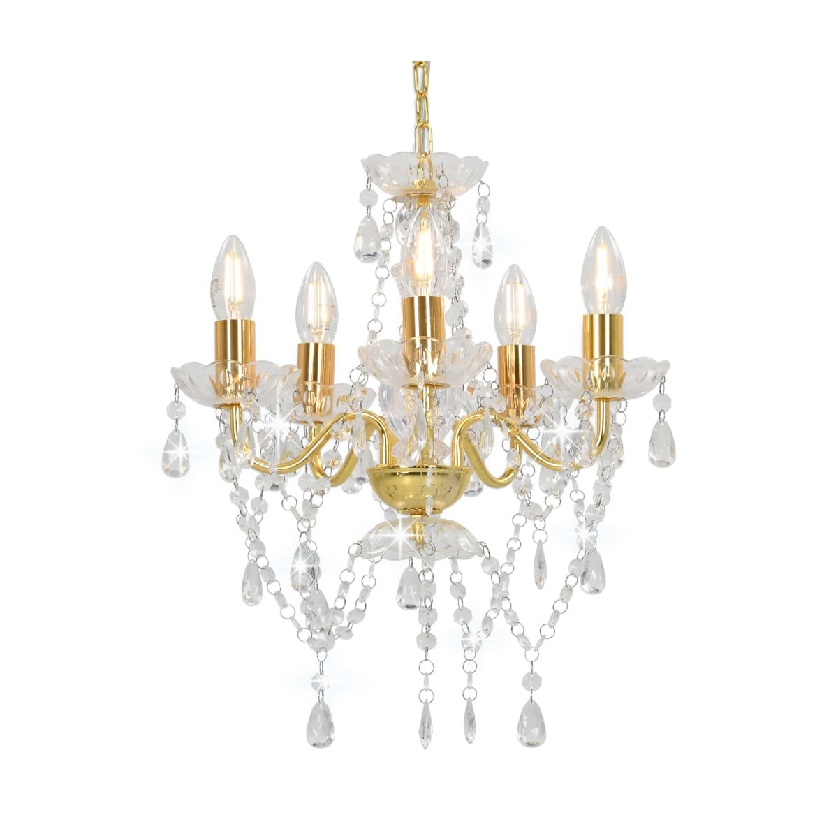 Con un diseño extravagante y a la moda, esta lámpara de araña con cuentas de cristal brillantes sin duda será una apuesta visual arriesgada y llamará la atención en la decoración de su hogar. Las gotitas transparentes y la estructura de 5 brazos ofrecen un encanto elegante y garantizan una iluminación óptima. Puede elegir e instalar bombillas E14 de diversos colores con el fin de crear un ambiente de calma y tranquilidad. Tenga en cuenta que las bombillas no están incluidas. Gracias a los materiales de montaje suministrados, puede montar e instalar la lámpara de techo de forma fácil y segura.