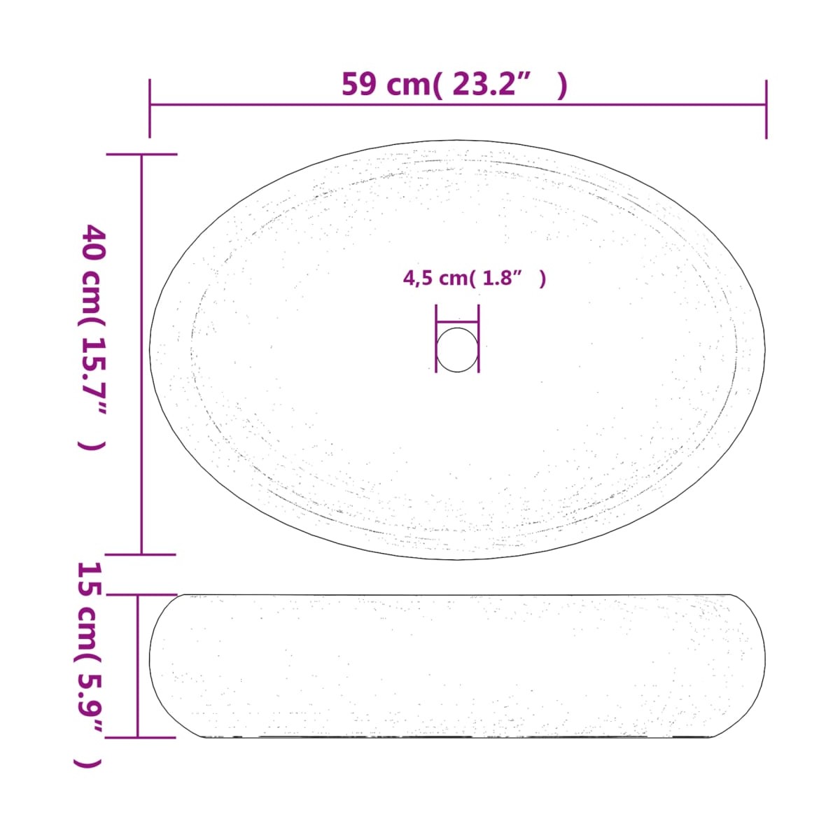 Este lavabo sobre encimera es un complemento elegante y atemporal para cualquier baño, aseo o tocador. Material duradero: El lavabo de baño, hecho de cerámica, tiene una superficie duradera que resiste frente a impactos, manchas y arañazos, con el fin de garantizar un brillo duradero.Bonitos motivos: Este lavabo tiene unos exquisitos motivos que aportan una elegancia y un glamur vintage y minimalista, para renovar al instante el cuarto de baño.Fácil de limpiar: Para mantener la belleza del lavamanos, basta con limpiar la superficie con un paño húmedo. Información útil:Al estar hecho a mano, el producto puede tener un color ligeramente desigual o un dibujo asimétrico, por lo que cada artículo es único. La entrega es aleatoria, lo que garantiza su exclusividad e individualidad. Además, las dimensiones pueden variar con una tolerancia de 2-3 cm.