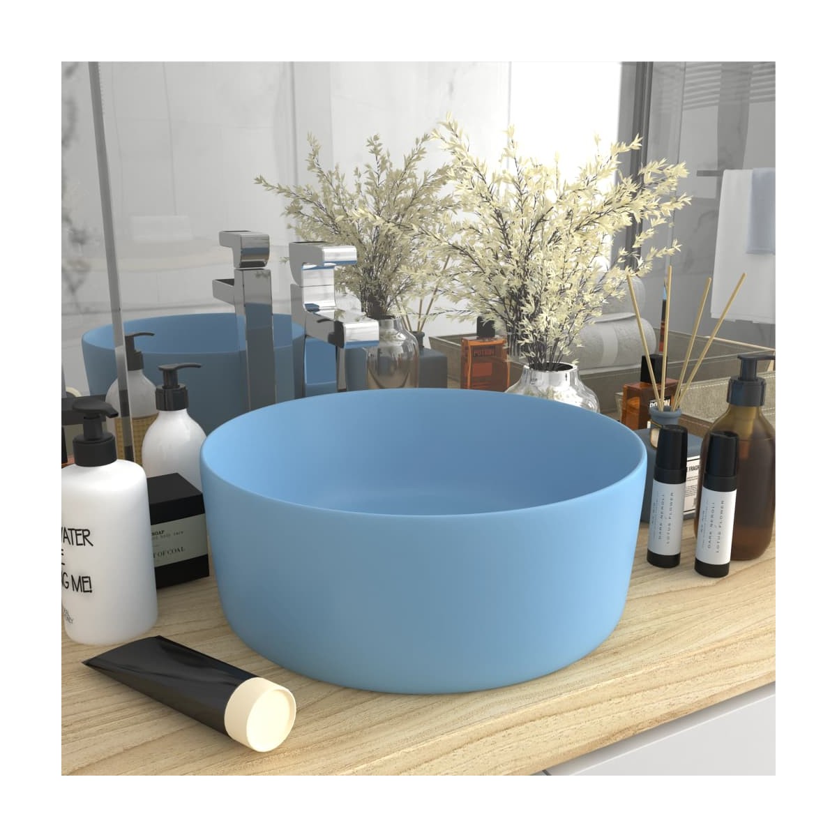 Nuestro lavabo redondo, hecho de cerámica de primera calidad, es un aporte estiloso perfecto para tu baño, aseo o tocador. Su superficie mate y su diseño de lujo aportan un diseño moderno pero elegante. Este lavabo de cerámica artística es más que un recipiente práctico para el uso diario. Es un adorno para tu hogar. Este lavabo sobre encimera se puede colocar encima de la consola del baño y también se puede usar en la sala de cosméticos, el garaje, la cocina o el lugar de trabajo. Definitivamente se adapta a cualquier estilo de interior y es bastante fácil de limpiar. El agujero para vaciar tiene 4,5 cm de diámetro. Ten en cuenta: la tubería de drenaje no está incluida en la entrega.