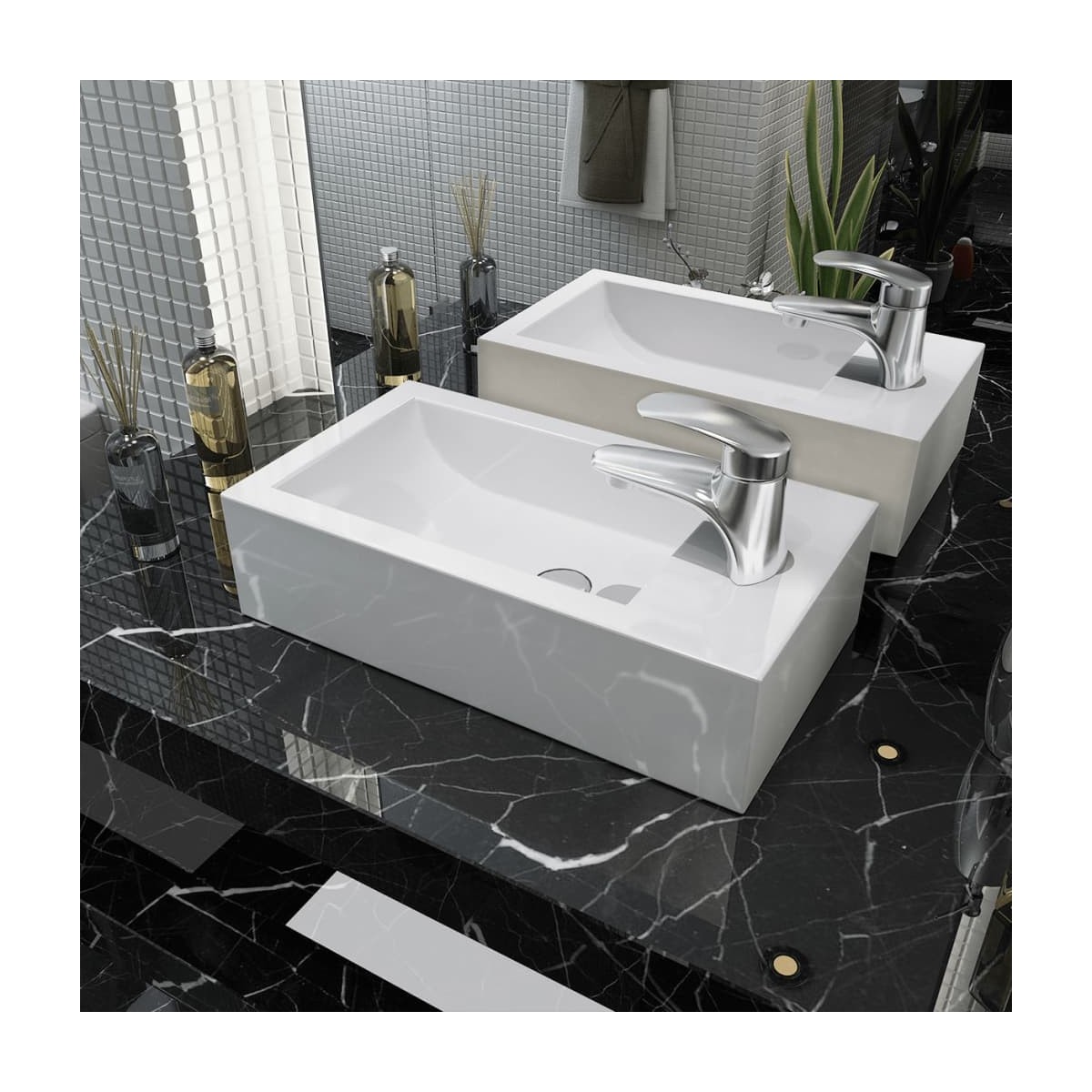 Este lavabo es un complemento elegante y atemporal para cualquier baño, aseo o tocador. Material duradero: El lavamanos de baño está hecho de cerámica lisa. Los materiales cerámicos son...