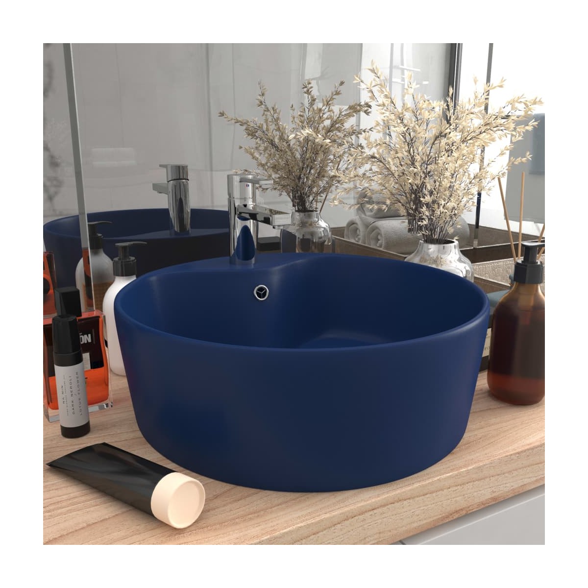 Nuestro lavabo redondo, hecho de cerámica, es un aporte elegante y atemporal para cualquier baño, aseo o tocador. El lavabo sirve como recipiente para el uso diario y también es un adorno para tu casa. Este lavabo se puede colocar encima de la consola del baño y también se puede usar en la sala de cosméticos, el garaje, la cocina o el lugar de trabajo. Gracias a su diseño vanguardista y moderno, este lavabo definitivamente se adapta a cualquier decoración y es fácil de limpiar. Su superficie mate y su diseño de lujo añaden un toque encantador a este lavabo de baño. El lavabo, equipado con un rebosadero, expulsa el agua de forma eficaz cuando se llena demasiado. Además, el fregadero de piedra tiene un orificio de grifo para instalar un grifo. El orificio de drenaje tiene 4,5 cm de diámetro. Ten en cuenta que el grifo y el desagüe no están incluidos en la entrega.