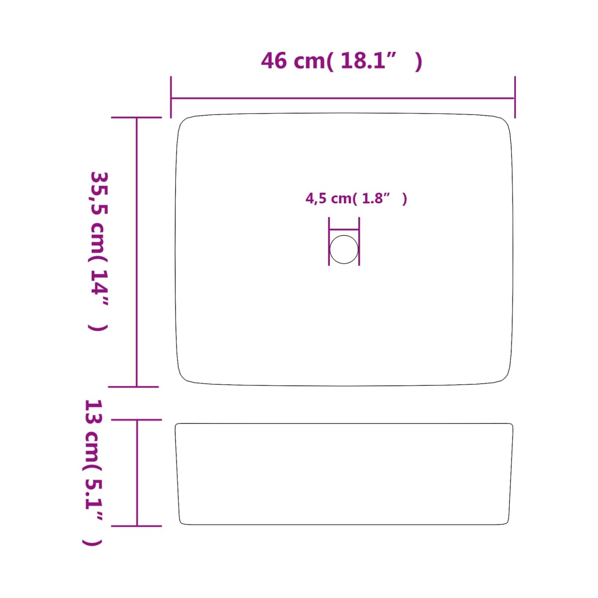 - Diámetro del orificio de drenaje: 4,5 cm