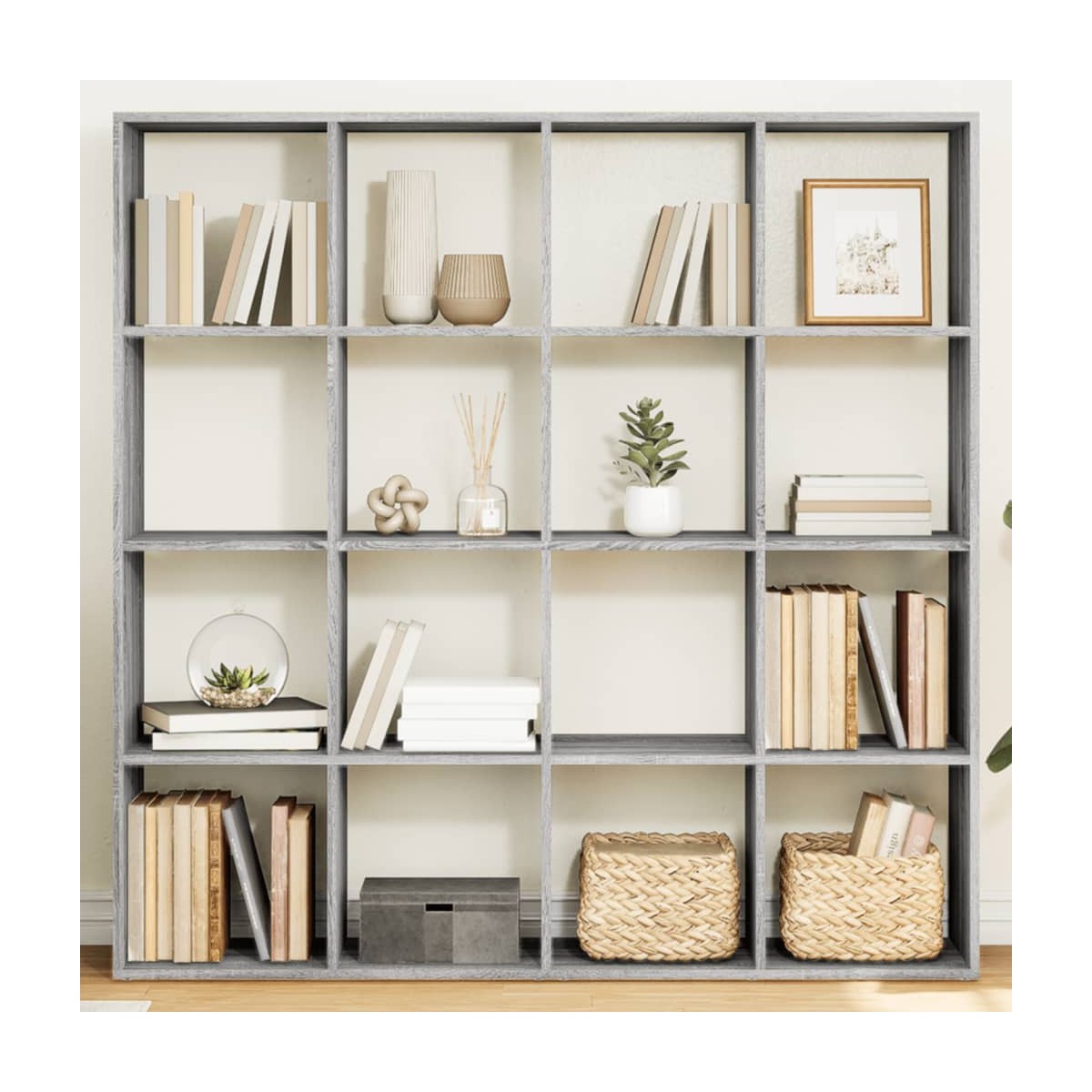 Este clásico mueble para libros, con un diseño elegante, es un complemento tanto decorativo como práctico para tu decoración.Material duradero:La madera de ingeniería tiene una calidad excepcional, con una superficie lisa y también con fuerza, estabilidad y resistencia a la humedad.Amplio espacio de almacenamiento: La estantería está diseñada con 16 compartimentos espaciosos, que ofrecen un amplio espacio de almacenaje para mantener tus revistas, libros, DVD, dispositivos multimedia y otros artículos decorativos bien organizados y al alcance de la mano.Estantería versátil: La estantería también puede servir como divisor de habitaciones, por lo que es una opción perfecta para la casa.Fácil de mantener: Esta estantería de almacenaje se limpia fácilmente con un paño húmedo y requiere poco mantenimiento.Advertencia:Para evitar que vuelque, este producto debe usarse con el dispositivo de fijación a la pared suministrado.