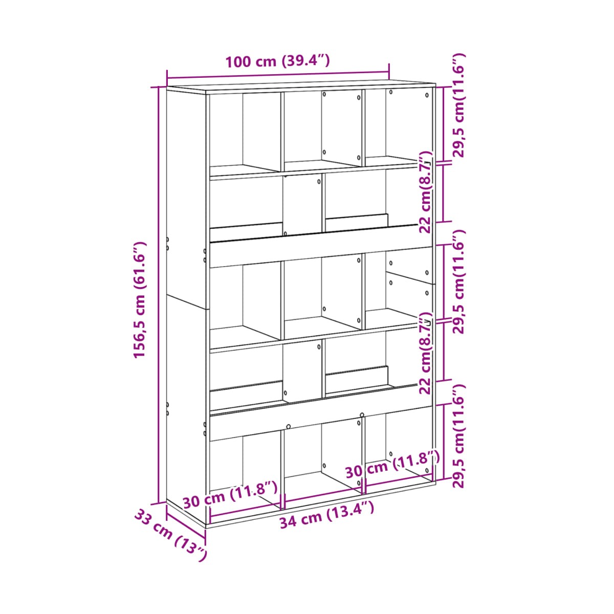 Esta librería clásica, con un diseño elegante, es un complemento decorativo y práctico para tu decoración actual.Material duradero: La madera de ingeniería tiene una calidad excepcional, con una superficie lisa y también cuenta con fuerza, estabilidad y resistencia a la humedad.Amplio espacio de almacenamiento: La estantería está diseñada con 13 compartimentos espaciosos, por lo que ofrece un amplio espacio de almacenamiento para guardar tus revistas, libros, DVD, dispositivos multimedia y otros objetos decorativos bien organizados y al alcance.Estantería versátil: La estantería también puede servir como divisor de habitaciones, por lo que es una opción perfecta para la casa.Superficie fácil de limpiar: La librería es fácil de limpiar con un paño húmedo.Advertencia:Para evitar que vuelque, este producto debe usarse con el dispositivo de fijación a la pared (no incluido).