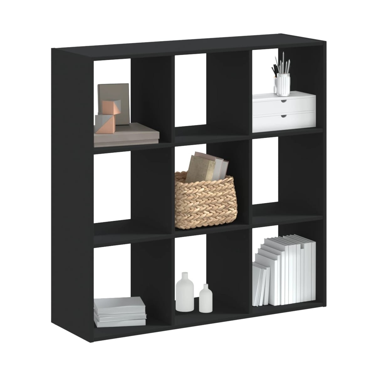 ¡Consigue un plus de almacenaje en casa y en la oficina con esta estantería! Puedes encontrar un espacio perfecto para todos tus tesoros. Material estable y duradera: La madera de ingeniería es un material duradero y estable con una superficie lisa que es resistente a la humedad, la deformación y la división, lo que la convierte en una opción confiable para una variedad de proyectos.Amplio espacio de almacenamiento: Esta librería está diseñada con 9 compartimentos, ofreciendo un amplio espacio de almacenamiento para mantener tus objetos de colección, libros, objetos, marcos de fotos y otros artículos decorativos bien organizados y al alcance de la mano.Fácil de mantener: Gracias a su superficie lisa, la librería es fácil de limpiar con un paño húmedo y requiere menos mantenimiento.Diseño de particiones: El diseño de particiones en cada capa te permite colocar tus objetos de una manera más organizada y clasificarlos en consecuencia.Estantería versátil: La estantería también puede servir como divisor de habitaciones, por lo que es una opción perfecta para la casa. Advertencia:Para evitar que vuelque, este producto debe usarse con el dispositivo de fijación a la pared suministrado.