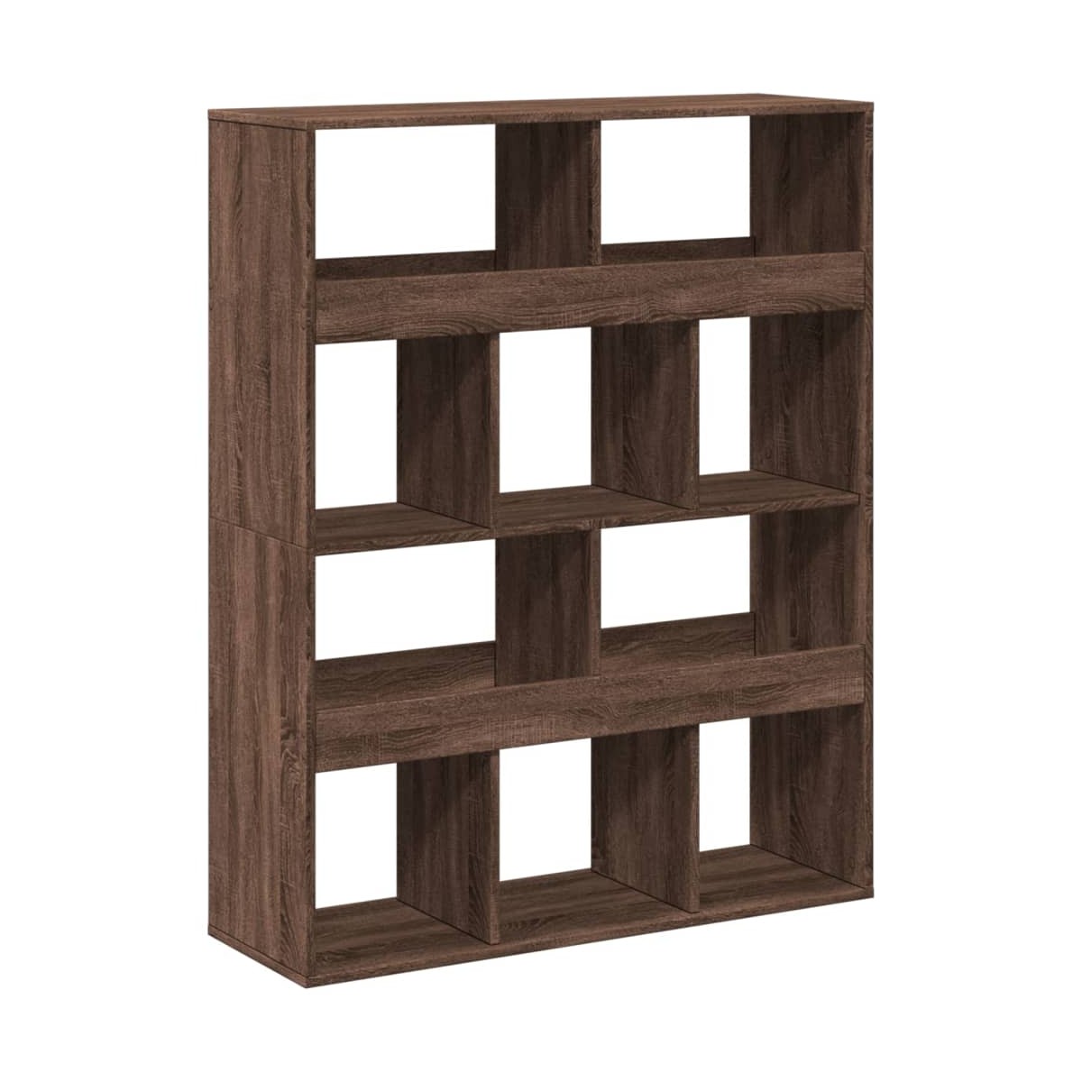 Este clásico separador de ambientes, de elegante diseño, es un complemento decorativo a la vez que práctico para tu decoración actual.Material duradero: La madera de ingeniería tiene una calidad excepcional, con una superficie lisa y también cuenta con fuerza, estabilidad y resistencia a la humedad.Amplio espacio de almacenaje: El divisor está diseñado con 10 espaciosos estantes, que ofrecen un amplio espacio de almacenamiento para guardar revistas, libros, DVD, dispositivos multimedia y otros objetos decorativos bien organizados y al alcance.Estantería versátil: La mampara de oficina puede servir también como librería, por lo que es una opción perfecta para tu hogar.Fácil de mantener: Gracias a su superficie lisa, la estantería divisora es fácil de limpiar con un paño húmedo y requiere menos mantenimiento.Advertencia:Para evitar que vuelque, este producto debe usarse con el dispositivo de fijación a la pared (no incluido).