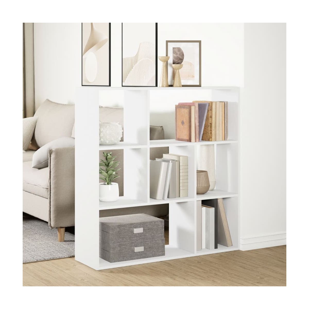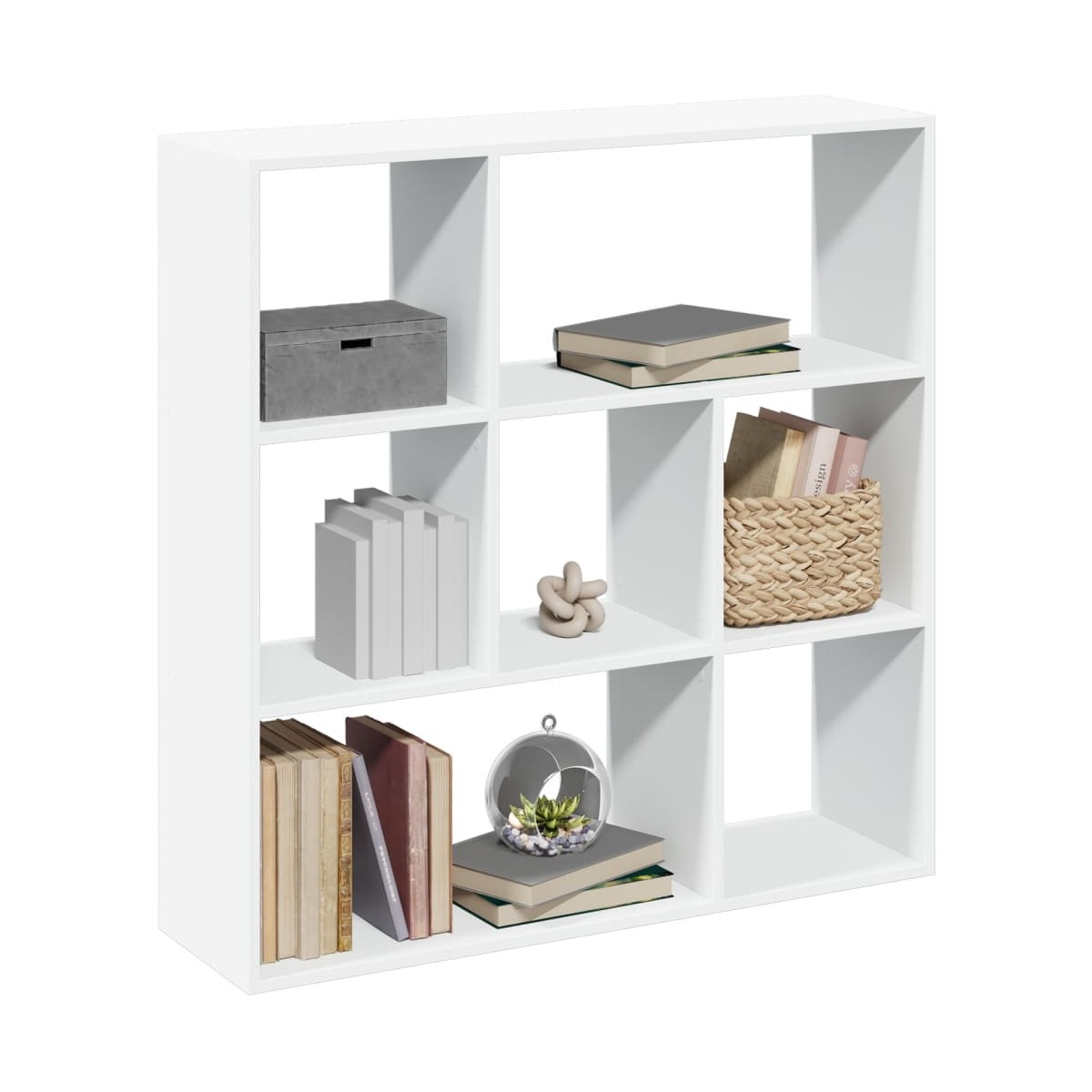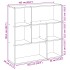 La moderna librería separadora de ambientes combina un diseño de formas geométricas con almacenamiento, ¡perfecta para organizar tu espacio con estilo! Material estable y duradero: La madera de ingeniería es un material duradero y estable con una superficie lisa que es resistente a la humedad, la deformación y la rotura, lo que la convierte en una opción fiable para varios proyectos.Amplio espacio de almacenamiento: La estantería para libros cuenta con siete compartimentos cúbicos, perfectos para organizar libros, adornos y otros artículos del hogar.Opciones de ubicación flexibles: La estantería se puede colocar con su anchura o altura en el suelo, lo que ofrece opciones versátiles de distribución de la habitación.Diversos usos: La estantería también se puede utilizar como separador de ambientes, adaptándose fácilmente a cualquier estilo de habitación. Puedes colocarlo en el salón para exhibir la decoración, en el estudio para almacenar libros y documentos, en el dormitorio para almacenar artículos cotidianos y en el sótano para almacenar cosas y cosas.Fácil mantenimiento: Gracias a su superficie lisa, la estantería es fácil de limpiar con un paño húmedo y requiere menos mantenimiento. Advertencia:Para evitar que vuelque, este producto debe usarse con el dispositivo de fijación a la pared suministrado. Información útil:Los tornillos y los tacos para el interior de la pared no están incluidos. Recomendamos encontrar y utilizar tornillos y tacos adecuados específicamente para las paredes. Si no estás seguro, puedes consultar con un profesional. Lee y sigue cada paso de las instrucciones.
