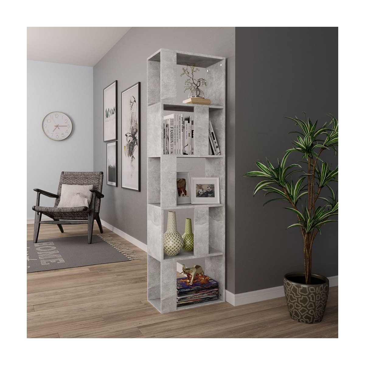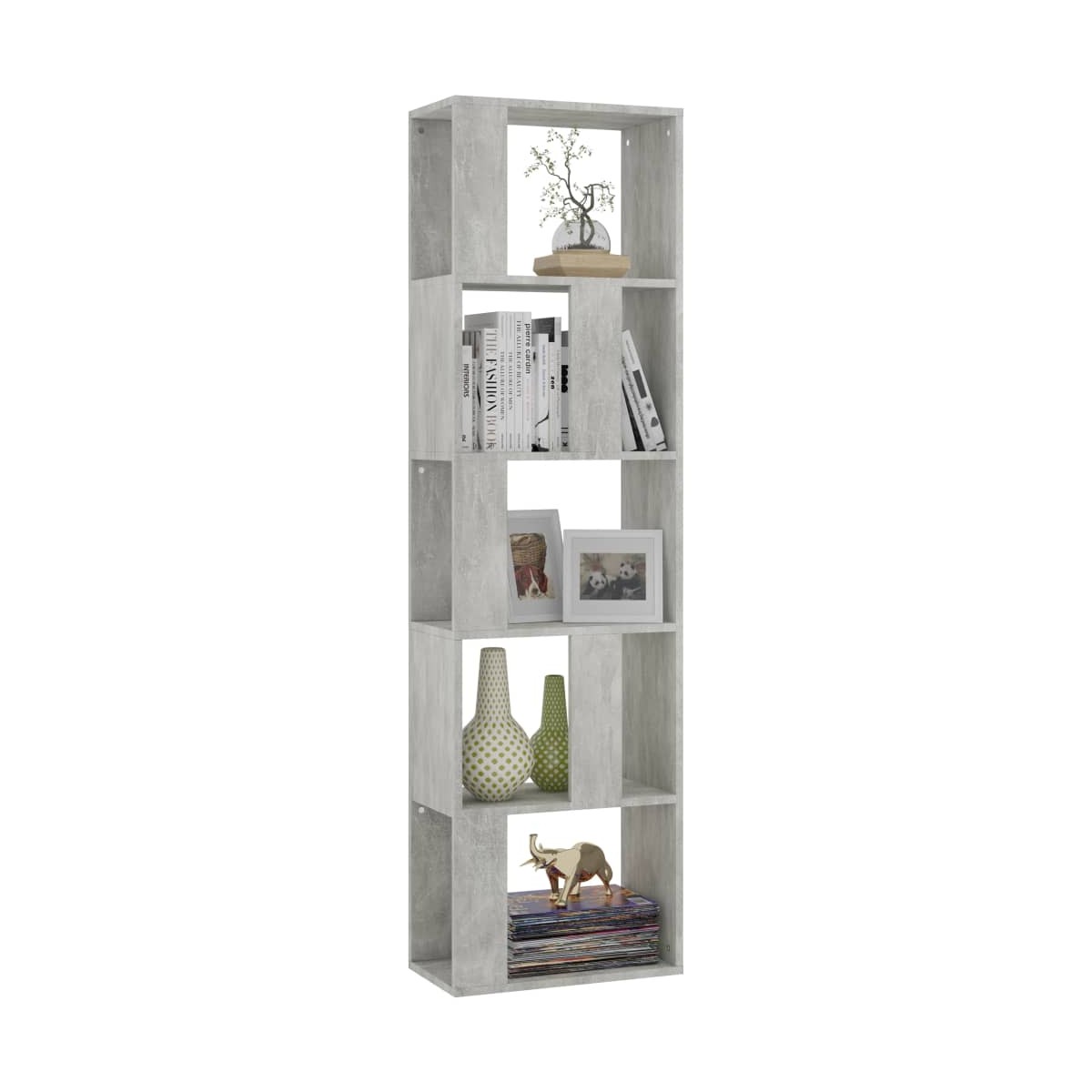 Con un diseño elegante y clásico, este mueble para libros será un aporte decorativo y práctico para tu decoración. La estantería es de madera contrachapada de calidad, lo que garantiza su robustez, durabilidad y larga vida útil. Cuenta con 5 compartimentos espaciosos y ofrece un amplio espacio donde guardar de forma organizada y al alcance de la mano revistas, libros, DVD, dispositivos multimedia u objetos decorativos. Además, es una estantería versátil, ya que también puede utilizarse como divisor de ambientes, lo que la hace ideal para colocarla en un recibidor u otra estancia de tu hogar. La estantería de libros es fácil de limpiar con un simple paño húmedo. Y también fácil de montar con los materiales de montaje incluidos.