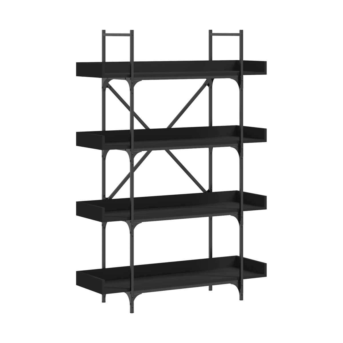 Esta librería ofrece una solución ideal para organizar los libros y será un complemento decorativo y práctico para la decoración de tu hogar. Material duradero: La madera contrachapada tiene una calidad excepcional, con una superficie lisa y también cuenta con fuerza, estabilidad y resistencia a la humedad. Fabricada en madera de ingeniería, la estantería es fácil de limpiar.Amplio espacio de almacenaje: La estantería ofrece un amplio espacio de almacenaje para mantener bien organizados y al alcance revistas, libros, artículos decorativos y otros objetos de uso diario.Patas ajustables: Las patas regulables con tacos de plástico mantienen equilibrada la estantería sobre suelos irregulares y aumentan su estabilidad.Diseño bien pensado: Los bordes elevados (tanto laterales como traseros) de los estantes evitan que tus pertenencias se caigan y protegen las paredes de la suciedad y los arañazos.Estructura estable: La barra en X y la estructura metálica añade un estilo industrial a la casa, además de garantizar su durabilidad y estabilidad. Advertencia:Para evitar que vuelque, este producto debe usarse con el dispositivo de fijación a la pared incluido.
