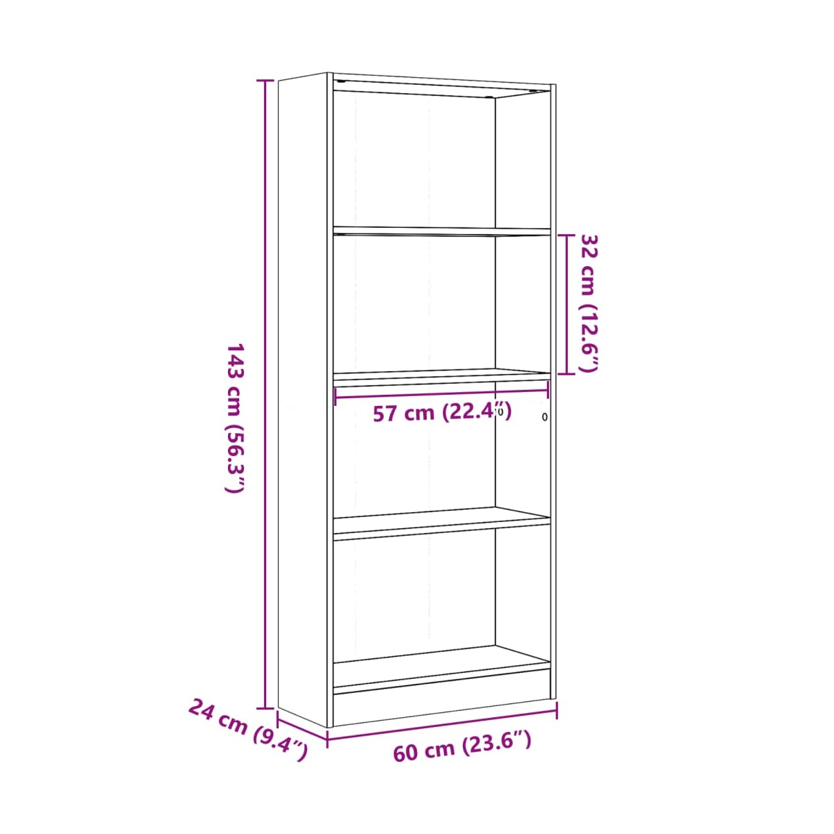 - Dimensiones: 60 x 24 x 143 cm (ancho x profundo x alto)