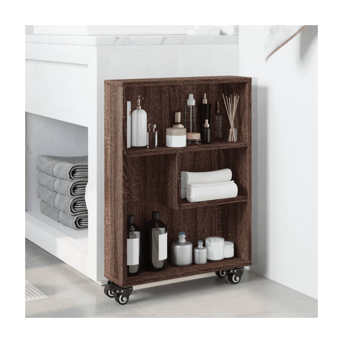 Este carro de almacenamiento estrecho está destinado a ser un aporte decorativo y práctico para tu hogar. Material estable y duradero: La madera de ingeniería es un material duradero y estable con una superficie lisa que es resistente a la humedad, la deformación y la rotura, lo que la convierte en una opción fiable para una variedad de proyectos.Amplio espacio de almacenamiento: El carro de almacenamiento delgado proporciona un amplio espacio de almacenamiento para mantener tus diversos elementos esenciales diarios bien organizados y al alcance de la mano.Fácil de mover: Este carrito rodante, con las cuatro ruedas giratorias incluidas, se puede mover fácilmente al lugar deseado. Dos de las ruedas se pueden bloquear, lo que mantiene el mueble en su sitio y añade estabilidad.Diseño práctico: Puedes colocar tus artículos de tocador u otros artículos accesibles dejándolos abiertos, u ocultar el contenido colocando el carrito con el lado abierto contra la pared.Diversos usos: Dependiendo de tus necesidades, puedes utilizar este carro de almacenamiento en la sala de estar, la cocina o el baño gracias a su forma estrecha, incluso en espacios pequeños.