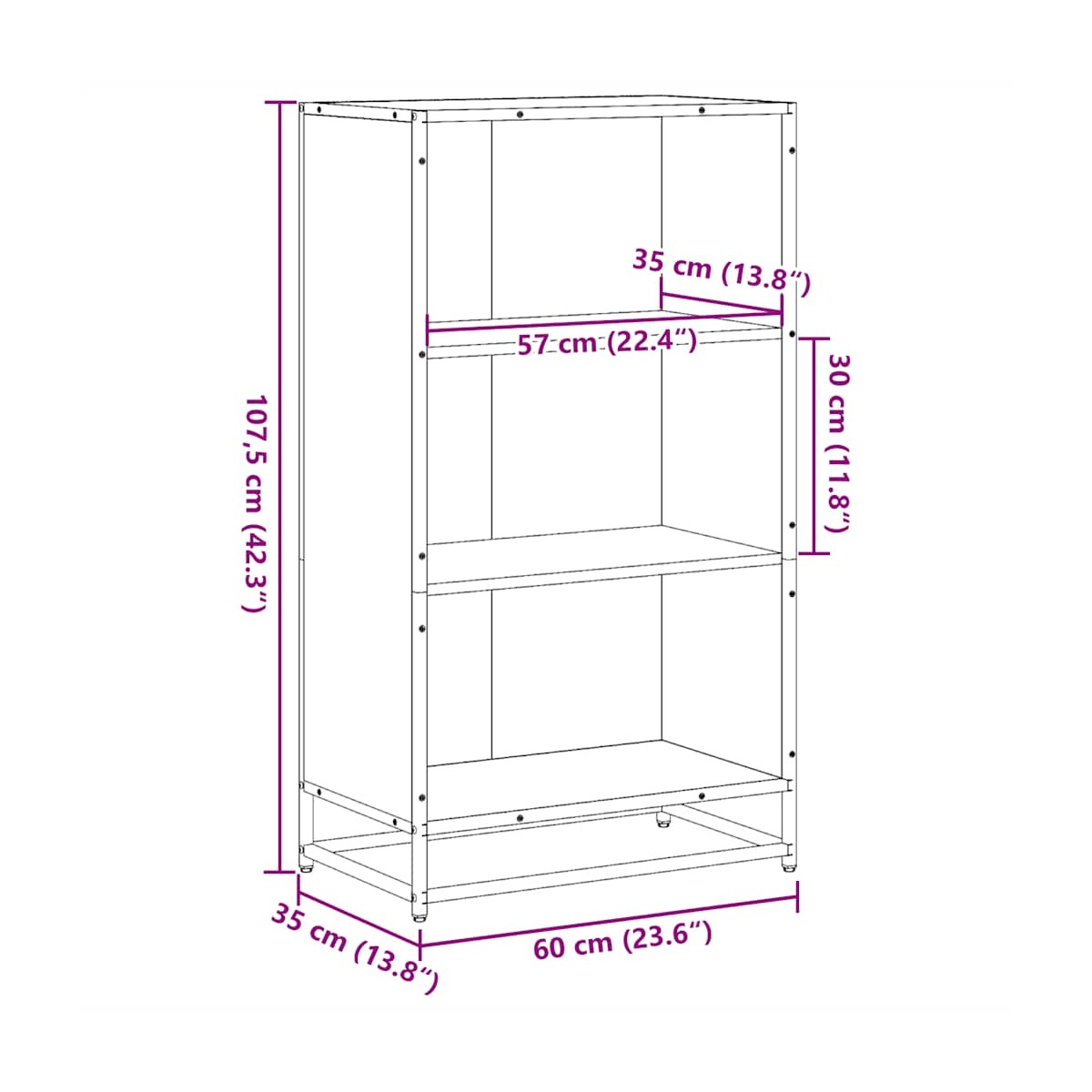 Esta versátil estantería para libros será un aporte decorativo y práctico para la decoración de tu hogar. Estructura estable y duradera: La estructura metálica del armario de almacenamiento realza tu hogar con un estilo industrial y proporciona una durabilidad, estabilidad y resistencia a la corrosión excepcionales.Material estable y duradero: La madera de ingeniería es un material duradero y estable con una superficie lisa que es resistente a la humedad, la deformación y la rotura, lo que la convierte en una opción fiable para una variedad de proyectos.Amplio espacio de almacenaje: El divisor está diseñado con 3 espaciosos estantes, que ofrecen un amplio espacio de almacenamiento para guardar revistas, libros, DVD, dispositivos multimedia y otros objetos decorativos bien organizados y al alcance.Parte superior práctica: la parte superior resistente es ideal para colocar objetos pequeños o algunos elementos decorativos como jarrones o plantas en macetas.Diseño moderno: ¡Da un estilo moderno a tu casa! El moderno diseño posee líneas limpias, aspectos minimalistas y luz natural como parte del estilo de interiorismo. Advertencia:Para evitar que vuelque, este producto debe usarse con el dispositivo de fijación a la pared suministrado.