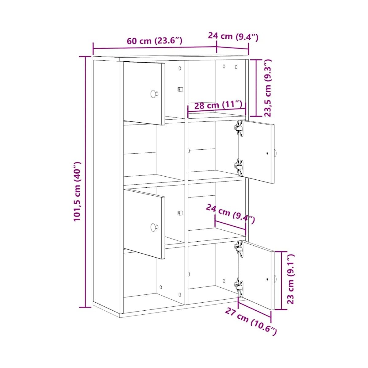 - Dimensiones totales: 60 x 24 x 101,5 cm (ancho x profundo x alto)