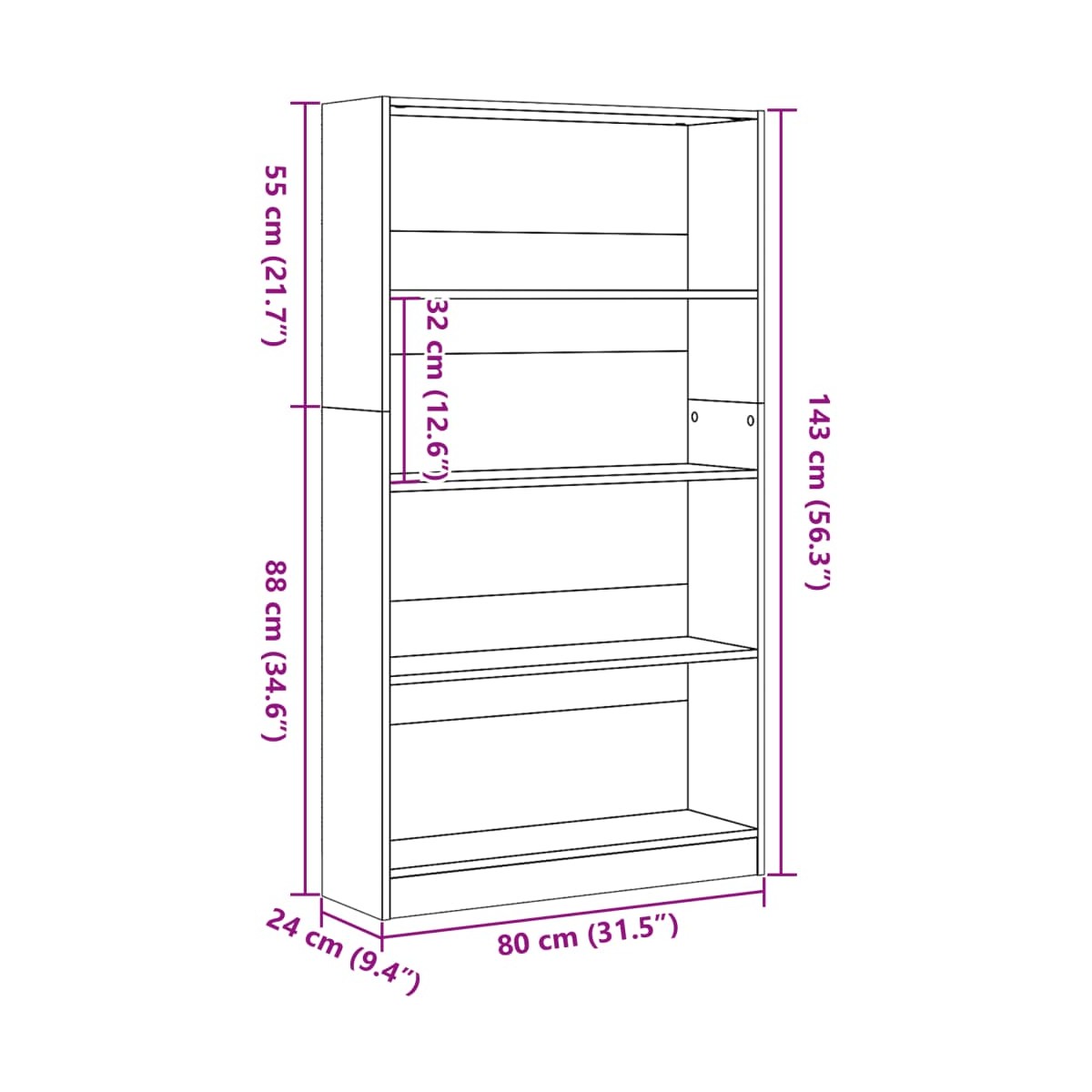 - Dimensiones: 80 x 24 x 143 cm (ancho x profundo x alto)