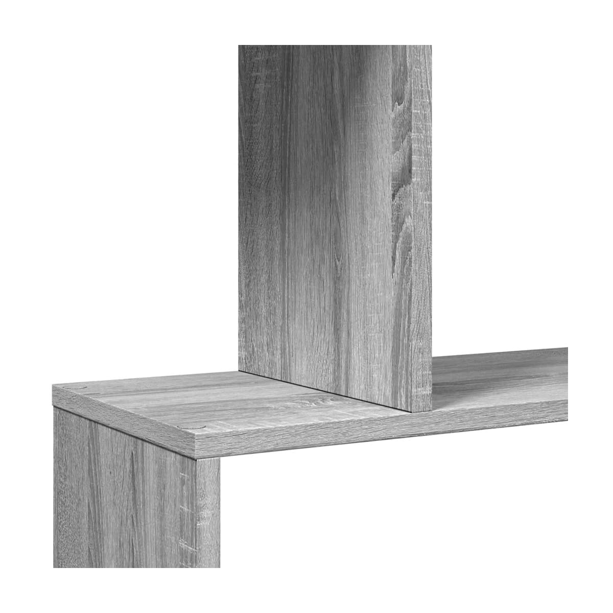 La estantería separadora de ambientes combina un diseño de formas geométricas con almacenamiento, ¡perfecta para organizar tu espacio con estilo! Material estable y duradero: La madera de ingeniería es un material duradero y estable con una superficie lisa que es resistente a la humedad, la deformación y la rotura, lo que la convierte en una opción fiable para varios proyectos.Amplio espacio de almacenamiento: La estantería cuenta con compartimentos de almacenamiento escalonados, que ofrecen un amplio espacio para tus libros o decoraciones. También puedes optar por exhibir artículos más pequeños en las plataformas laterales, haciendo un uso óptimo del espacio mientras mantiene tus pertenencias ordenadas.Opciones de ubicación flexibles: El estante de almacenamiento se puede colocar con su ancho o alto en el suelo, ofreciendo diferentes opciones de distribución de la habitación.Aplicaciones versátiles: La estantería también se puede utilizar como separador de ambientes, adaptándose fácilmente a cualquier estilo de habitación. Puedes colocarlo en el salón para exhibir la decoración, en el estudio para almacenar libros y documentos, en el dormitorio para almacenar artículos cotidianos y en el sótano para almacenar cosas y cosas.Fácil mantenimiento: Gracias a su superficie lisa, la estantería de almacenamiento es fácil de limpiar con un paño húmedo y requiere menos mantenimiento. Advertencia:Para evitar que vuelque, este producto debe usarse con el dispositivo de fijación a la pared suministrado. Información útil:Los tornillos y los tacos para el interior de la pared no están incluidos. Recomendamos encontrar y utilizar tornillos y tacos adecuados específicamente para las paredes. Si no estás seguro, puedes consultar con un profesional. Lee y sigue cada paso de las instrucciones.