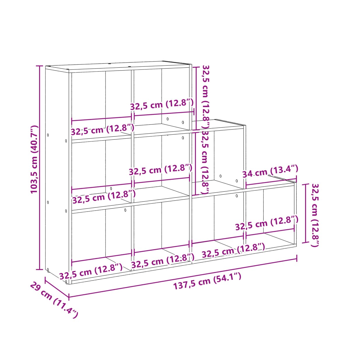 La estantería separadora de ambientes de 3 niveles cuenta con nueve compartimentos cúbicos, ¡perfecta para organizar su espacio con estilo!Material estable y duradero: La madera de ingeniería es un material duradero y estable con una superficie lisa que es resistente a la humedad, la deformación y la rotura, lo que la convierte en una opción fiable para varios proyectos.Amplio espacio de almacenamiento: La estantería para libros cuenta con nueve compartimentos cúbicos, perfectos para organizar libros, adornos y otros artículos del hogar.Opciones de ubicación flexibles: La estantería se puede colocar con su anchura o altura en el suelo, lo que ofrece opciones versátiles de distribución de la habitación.Diversos usos: La estantería también se puede utilizar como separador de ambientes, adaptándose fácilmente a cualquier estilo de habitación. Puedes colocarlo en el salón para exhibir la decoración, en el estudio para almacenar libros y documentos, en el dormitorio para almacenar artículos cotidianos y en el sótano para almacenar cosas y cosas.Fácil mantenimiento: Gracias a su superficie lisa, la estantería divisora de ambientes es fácil de limpiar con un paño húmedo y requiere menos mantenimiento.Advertencia:Para evitar que vuelque, este producto debe usarse con el dispositivo de fijación a la pared suministrado.Información útil:Los tornillos y los tacos para el interior de la pared no están incluidos. Te recomendamos buscar y utilizar tornillos y tacos adecuados específicamente para tus paredes. Si no estás seguro, puedes consultar con un profesional. Lee y sigue cada paso de las instrucciones.