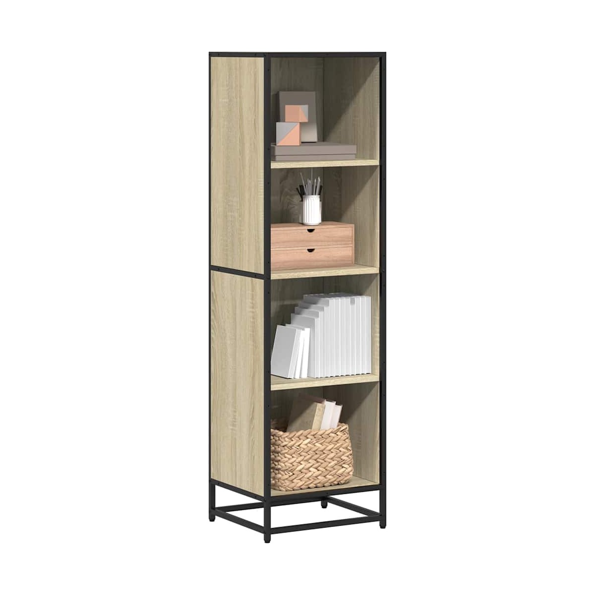 Esta versátil estantería para libros será un aporte decorativo y práctico para la decoración de tu hogar. Estructura estable y duradera: La estructura metálica del armario de almacenamiento realza tu hogar con un estilo industrial y proporciona una durabilidad, estabilidad y resistencia a la corrosión excepcionales.Material estable y duradero: La madera de ingeniería es un material duradero y estable con una superficie lisa que es resistente a la humedad, la deformación y la rotura, lo que la convierte en una opción fiable para una variedad de proyectos.Amplio espacio de almacenaje: El divisor está diseñado con 4 espaciosos estantes, que ofrecen un amplio espacio de almacenamiento para guardar revistas, libros, DVD, dispositivos multimedia y otros objetos decorativos bien organizados y al alcance.Parte superior práctica: la parte superior resistente es ideal para colocar objetos pequeños o algunos elementos decorativos como jarrones o plantas en macetas.Diseño moderno: ¡Da un estilo moderno a tu casa! El moderno diseño posee líneas limpias, aspectos minimalistas y luz natural como parte del estilo de interiorismo. Advertencia:Para evitar que vuelque, este producto debe usarse con el dispositivo de fijación a la pared suministrado.