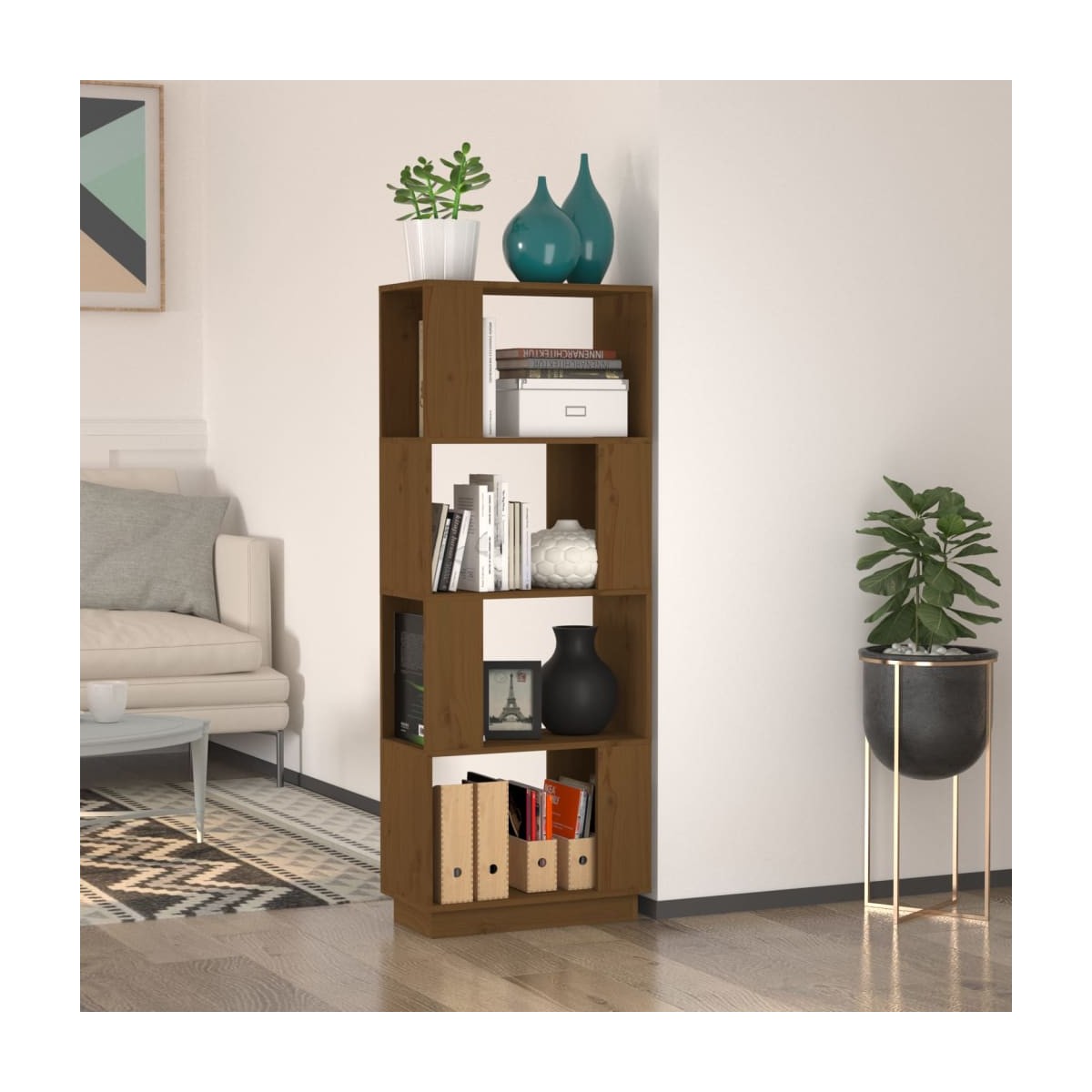 Este versátil armario de madera para libros será un aporte decorativo y práctico a la decoración de tu hogar. También se puede utilizar como separador de ambientes. Estructura duradera: La madera maciza de pino es un hermoso material natural. Trata la superficie con aceite, cera, laca o un acabado de barniz para conseguir una superficie más fuerte y más fácil de limpiar. La madera de pino tiene vetas rectas, y los nudos dan al material su distintivo aspecto rústico.Amplio espacio de almacenamiento: La estantería ofrece un amplio espacio de almacenamiento para guardar tus revistas, libros, DVD, dispositivos multimedia y otros objetos decorativos bien organizados y a tu alcance.Estantería versátil: Puede servir como divisor de espacios, por lo que es una opción perfecta para el pasillo y cualquier otra estancia. Además, el estante no tiene panel trasero por lo que tanto la parte delantera como la trasera son bonitas. Advertencia:Para evitar el vuelco, este producto debe usarse con el dispositivo provisto para fijarlo a la pared.