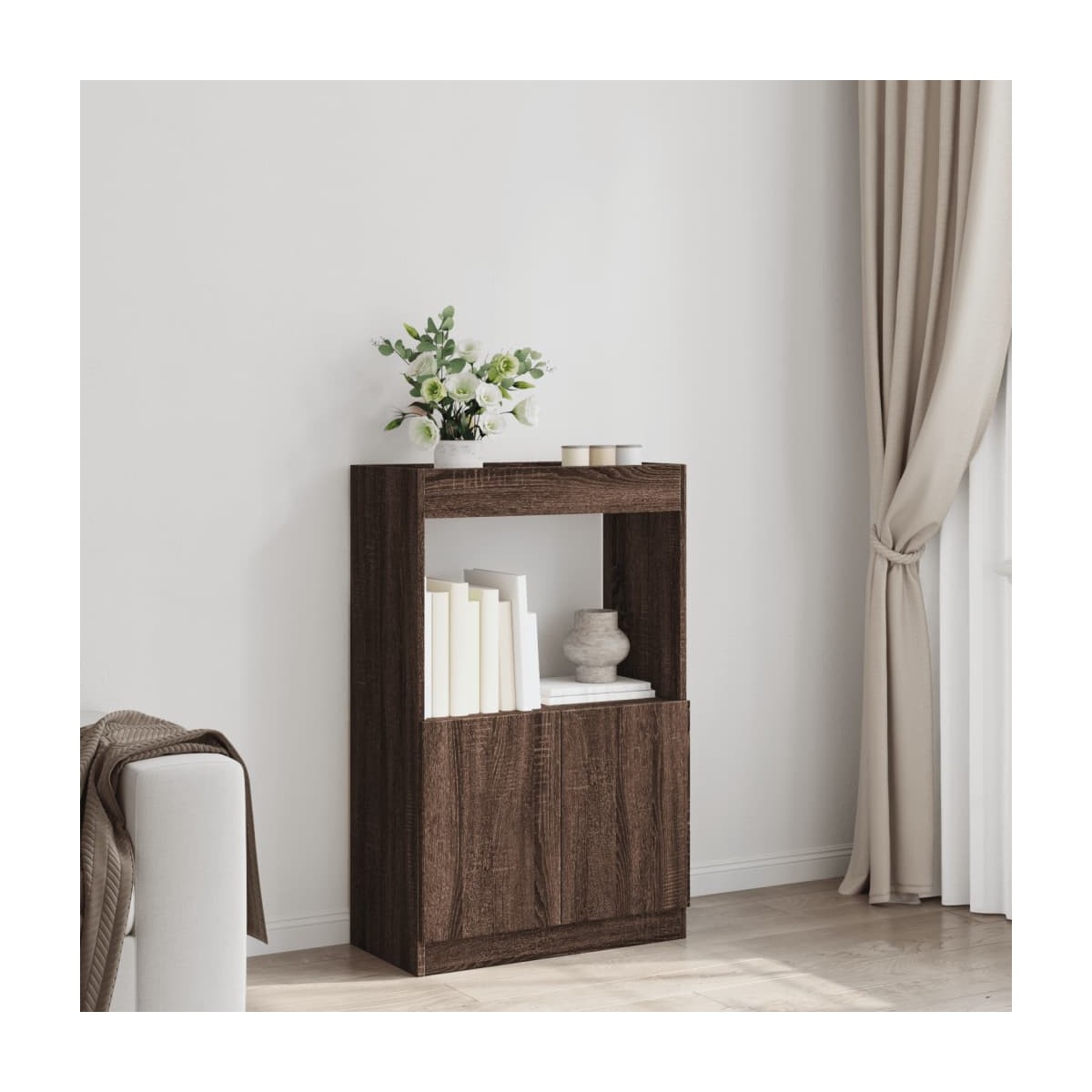 Este aparador clásico está destinado a ser un aporte decorativo y práctico a tu hogar y oficina. Material estable y duradero: La madera de ingeniería es un material duradero y estable con una superficie lisa que es resistente a la humedad, la deformación y la rotura, lo que la convierte en una opción fiable para una variedad de proyectos.Amplio espacio de almacenamiento: El aparador proporciona un amplio espacio de almacenamiento para mantener tus diversos elementos esenciales diarios bien organizados y al alcance de la mano.Diseño práctico: El aparador cuenta con un armario inferior con puertas, que pueden proteger sus cosas del polvo y la suciedad.Diversos usos: Este aparador se puede utilizar como armario para libros o estante de exhibición en su sala de estar, dormitorio u oficina, según tus necesidades. Advertencia:Para evitar que vuelque, este producto debe usarse con el dispositivo de fijación a la pared suministrado.