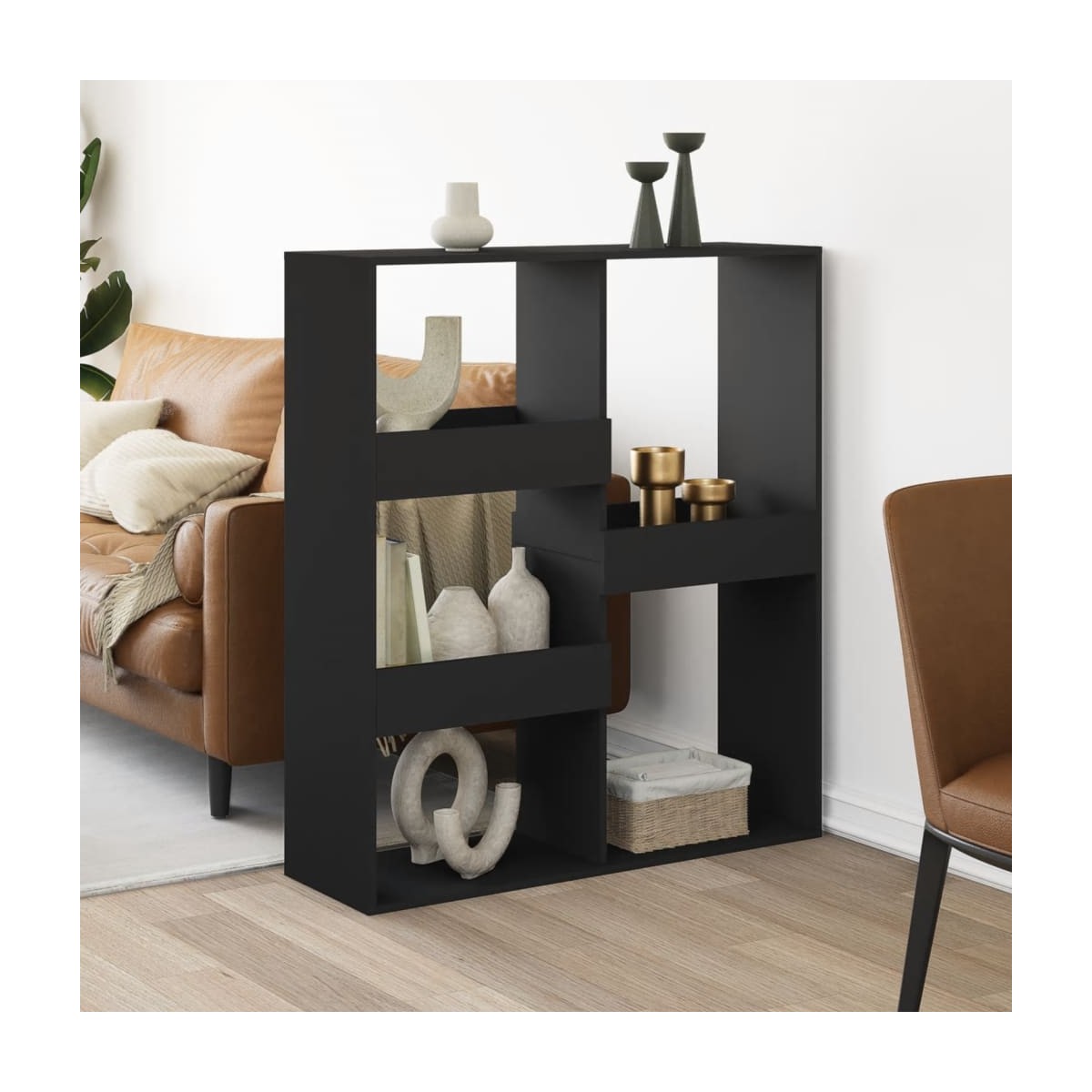 Esta librería clásica, con un diseño elegante, es un complemento decorativo y práctico para tu decoración actual.Material duradero: La madera de ingeniería tiene una calidad excepcional, con una superficie lisa y también cuenta con fuerza, estabilidad y resistencia a la humedad.Amplio espacio de almacenamiento: La estantería está diseñada con 5 estantes espaciosos, que ofrecen un amplio espacio de almacenamiento para mantener tus revistas, libros, DVD, dispositivos multimedia y otros artículos decorativos bien organizados y al alcance.Estantería versátil: La estantería también puede servir como divisor de habitaciones, por lo que es una opción perfecta para la casa.Superficie fácil de limpiar: La librería es fácil de limpiar con un paño húmedo.Advertencia:Para evitar que vuelque, este producto debe usarse con el dispositivo de fijación a la pared (no incluido).