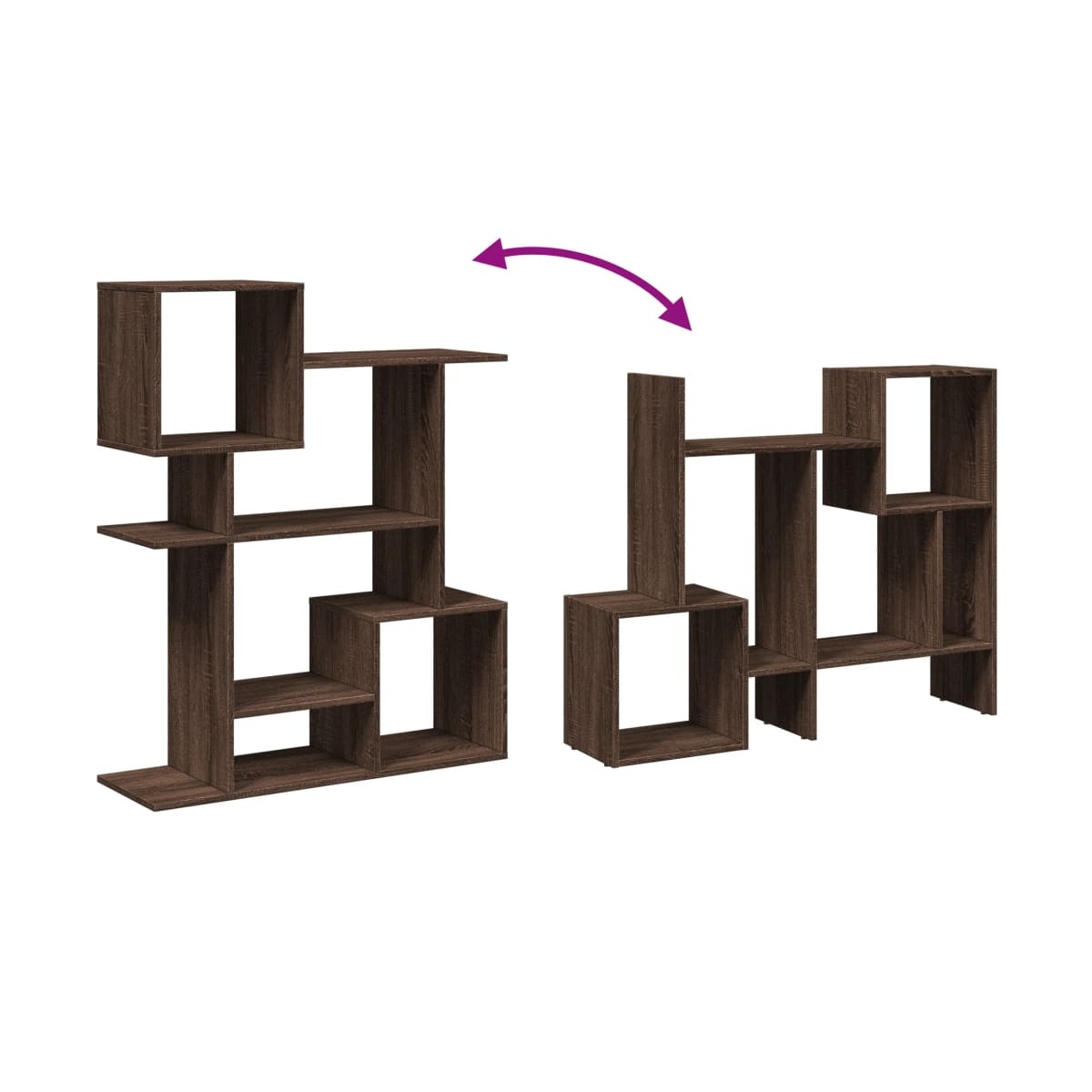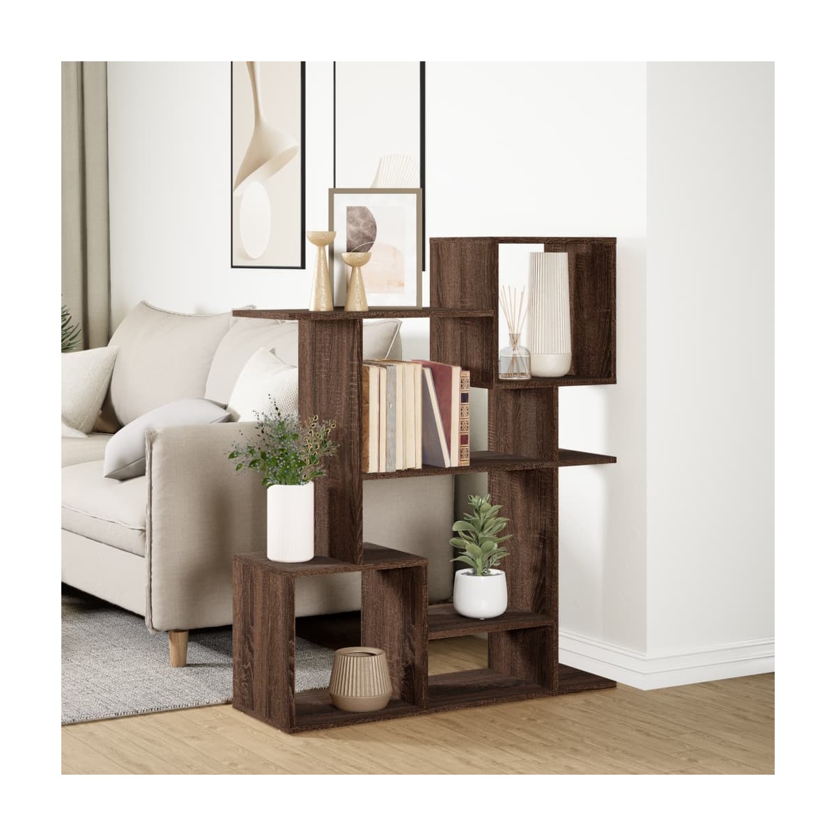La estantería separadora de ambientes combina un diseño de formas geométricas con almacenamiento, ¡perfecta para organizar tu espacio con estilo! Material estable y duradero: La madera de ingeniería es un material duradero y estable con una superficie lisa que es resistente a la humedad, la deformación y la rotura, lo que la convierte en una opción fiable para varios proyectos.Amplio espacio de almacenamiento: La estantería cuenta con compartimentos de almacenamiento escalonados, que ofrecen un amplio espacio para tus libros o decoraciones. También puedes optar por exhibir artículos más pequeños en las plataformas laterales, haciendo un uso óptimo del espacio mientras mantiene tus pertenencias ordenadas.Opciones de ubicación flexibles: El estante de almacenamiento se puede colocar con su ancho o alto en el suelo, ofreciendo diferentes opciones de distribución de la habitación.Aplicaciones versátiles: La estantería también se puede utilizar como separador de ambientes, adaptándose fácilmente a cualquier estilo de habitación. Puedes colocarlo en el salón para exhibir la decoración, en el estudio para almacenar libros y documentos, en el dormitorio para almacenar artículos cotidianos y en el sótano para almacenar cosas y cosas.Fácil mantenimiento: Gracias a su superficie lisa, la estantería de almacenamiento es fácil de limpiar con un paño húmedo y requiere menos mantenimiento. Advertencia:Para evitar que vuelque, este producto debe usarse con el dispositivo de fijación a la pared suministrado. Información útil:Los tornillos y los tacos para el interior de la pared no están incluidos. Recomendamos encontrar y utilizar tornillos y tacos adecuados específicamente para las paredes. Si no estás seguro, puedes consultar con un profesional. Lee y sigue cada paso de las instrucciones.
