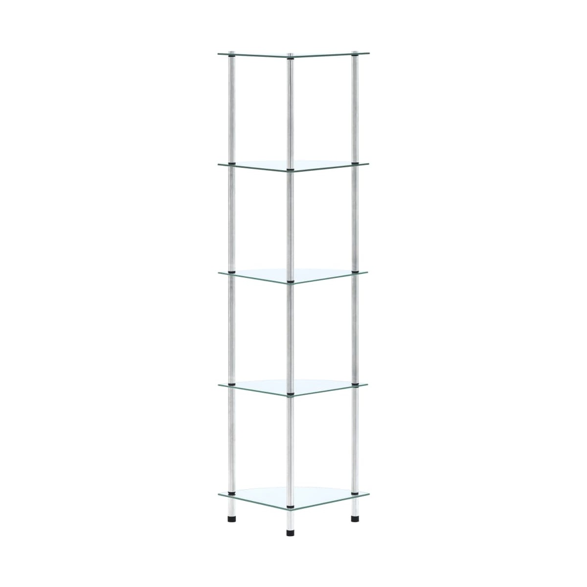 Añade al instante un toque de estilo a tu espacio con nuestra moderna y práctica estantería de cristal. La vitrina está diseñada con cinco niveles para ofrecer un amplio espacio de almacenamiento. Puedes utilizar la estantería multiusos en el salón o la oficina para exponer objetos de colección, marcos de fotos, plantas, o en el baño para mantener organizados tus objetos esenciales. Hecho de vidrio templado grueso y acero inoxidable resistente, este estante es muy resistente y seguro. Además, la superficie lisa es fácil de limpiar con sólo un paño húmedo. Nuestra estantería es fácil de montar.