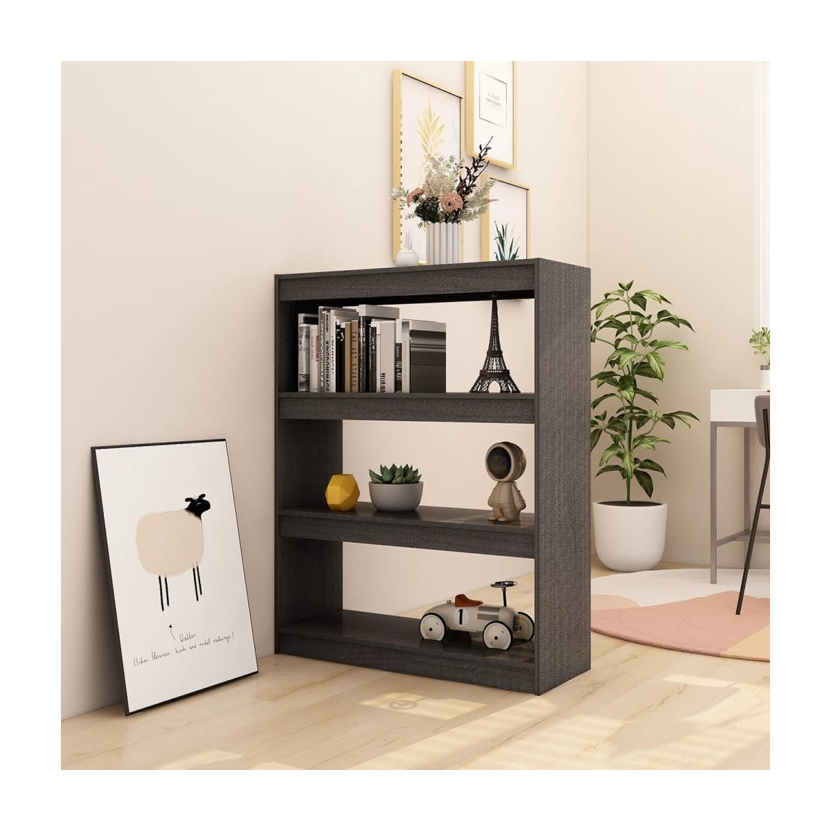 Como estante versátil, este armario para libros de madera aporta una decoración excelente y un toque práctico a tu decoración. El armario está hecho de madera maciza de pino que garantiza robustez y durabilidad. La estantería de libros ofrece un amplio espacio de almacenamiento para mantener tus libros, revistas, DVD, jarrones y otros artículos decorativos bien organizados y al alcance. ¡Coloca el estante en un lugar bien iluminado y sumérgete en tu libro favorito! Además, el estante de pie también es perfecto como separador de ambientes para cualquier sala de estar. El estante para libros es fácil de limpiar con un paño húmedo.