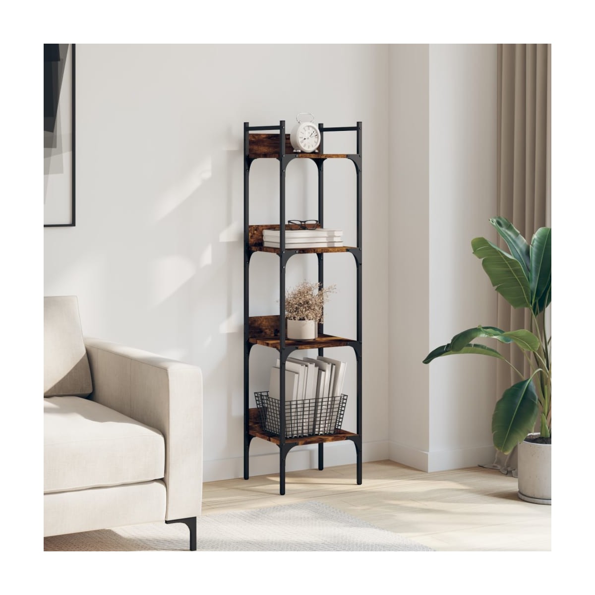 Esta estantería ayuda a organizar el desorden y es un complemento atemporal para la decoración de la casa. Diseño que ahorra espacio: La librería aprovecha al máximo el espacio vertical y ocupa poco espacio en el suelo, por lo que es muy adecuada para habitaciones pequeñas.Amplio espacio de almacenaje: La estantería cuenta con estantes abiertos a diferentes alturas y proporciona un amplio espacio para guardar y exponer libros, revistas, artículos decorativos, marcos de fotos, recuerdos de vacaciones y trofeos, además de realzar la decoración de la casa.Construcción robusta: El acero con recubrimiento en polvo y la madera de ingeniería garantizan una construcción resistente de la estantería y ofrecen un soporte fuerte a tus cosas.Segura de usar: El tablero protector de la estantería de almacenaje evita eficazmente que los objetos se caigan por la parte trasera.Diversos usos: La estantería expositora se adapta fácilmente a cualquier habitación. Puedes colocarla en el salón para exponer adornos, en el estudio para guardar libros y documentos, en el dormitorio para almacenar objetos cotidianos y en el sótano para guardar cachivaches. Advertencia:Para evitar que vuelque, este producto debe usarse con el dispositivo de fijación a la pared incluido.