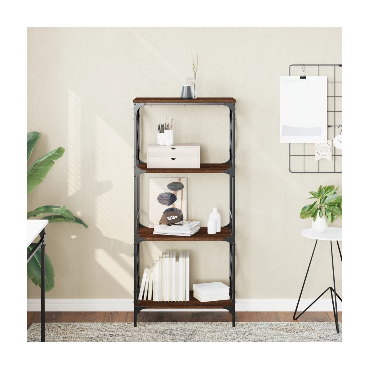 Esta librería ofrece una solución ideal para organizar los libros y será un complemento decorativo y práctico para la decoración de tu hogar. Material duradero: La madera contrachapada tiene una calidad excepcional, con una superficie lisa y también cuenta con fuerza, estabilidad y resistencia a la humedad. Fabricada en madera de ingeniería, la estantería es fácil de limpiar.Amplio espacio de almacenaje: La estantería ofrece un amplio espacio de almacenaje para mantener bien organizados y al alcance revistas, libros, artículos decorativos y otros objetos de uso diario.Patas ajustables: Las cuatro patas regulables con tacos de plástico mantienen equilibrada la estantería sobre suelos irregulares y aumentan su estabilidad.Estructura metálica: La estructura metálica añade un estilo industrial a la casa, además de garantizar su durabilidad y estabilidad. Advertencia:Para evitar que vuelque, este producto debe usarse con el dispositivo de fijación a la pared incluido.