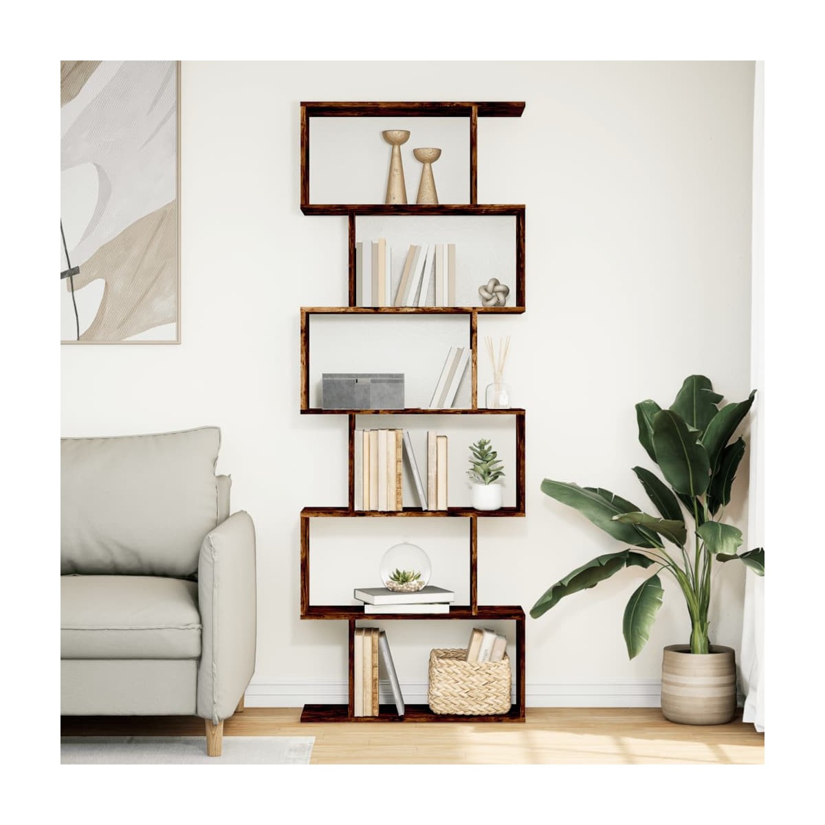 La estantería separadora de ambientes combina un diseño de formas geométricas con almacenamiento, ¡perfecta para organizar tu espacio con estilo! Material estable y duradero: La madera de ingeniería es un material duradero y estable con una superficie lisa que es resistente a la humedad, la deformación y la rotura, lo que la convierte en una opción fiable para varios proyectos.Amplio espacio de almacenamiento: La estantería cuenta con compartimentos de almacenamiento escalonados, que ofrecen un amplio espacio para tus libros o decoraciones. También puedes optar por exhibir artículos más pequeños en las plataformas laterales, haciendo un uso óptimo del espacio mientras mantiene tus pertenencias ordenadas.Opciones de ubicación flexibles: El estante de almacenamiento se puede colocar con su ancho o alto en el suelo, ofreciendo diferentes opciones de distribución de la habitación.Aplicaciones versátiles: La estantería también se puede utilizar como separador de ambientes, adaptándose fácilmente a cualquier estilo de habitación. Puedes colocarlo en el salón para exhibir la decoración, en el estudio para almacenar libros y documentos, en el dormitorio para almacenar artículos cotidianos y en el sótano para almacenar cosas y cosas.Fácil mantenimiento: Gracias a su superficie lisa, la estantería de almacenamiento es fácil de limpiar con un paño húmedo y requiere menos mantenimiento. Advertencia:Para evitar que vuelque, este producto debe usarse con el dispositivo de fijación a la pared suministrado. Información útil:Los tornillos y los tacos para el interior de la pared no están incluidos. Recomendamos encontrar y utilizar tornillos y tacos adecuados específicamente para las paredes. Si no estás seguro, puedes consultar con un profesional. Lee y sigue cada paso de las instrucciones.