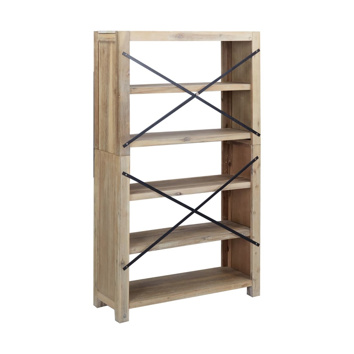 Esta estantería ofrece una solución ideal para organizar tus libros y dará un toque de encanto rústico a la casa. Material duradero: La librería está fabricada con madera maciza de acacia, MDF y acabado de acacia, lo que la hace muy duradera y resistente.Acabado cepillado: El acabado cepillado da a la estantería un aspecto auténtico, gastado y retro, y a tu hogar un look más tradicional.Amplio espacio de almacenaje: La práctica librería tiene 5 estantes, que proporcionan amplio espacio de almacenaje para tener ordenadas tu colección de libros, revistas y documentos.Función expositora: La estantería de almacenaje también puede usarse para colocar adornos, álbumes de fotos, etc. Advertencia:Para evitar el vuelco, este producto debe usarse con el dispositivo provisto para fijarlo a la pared. Nota:Cada producto viene con un manual de montaje en la caja para facilitar el montaje.